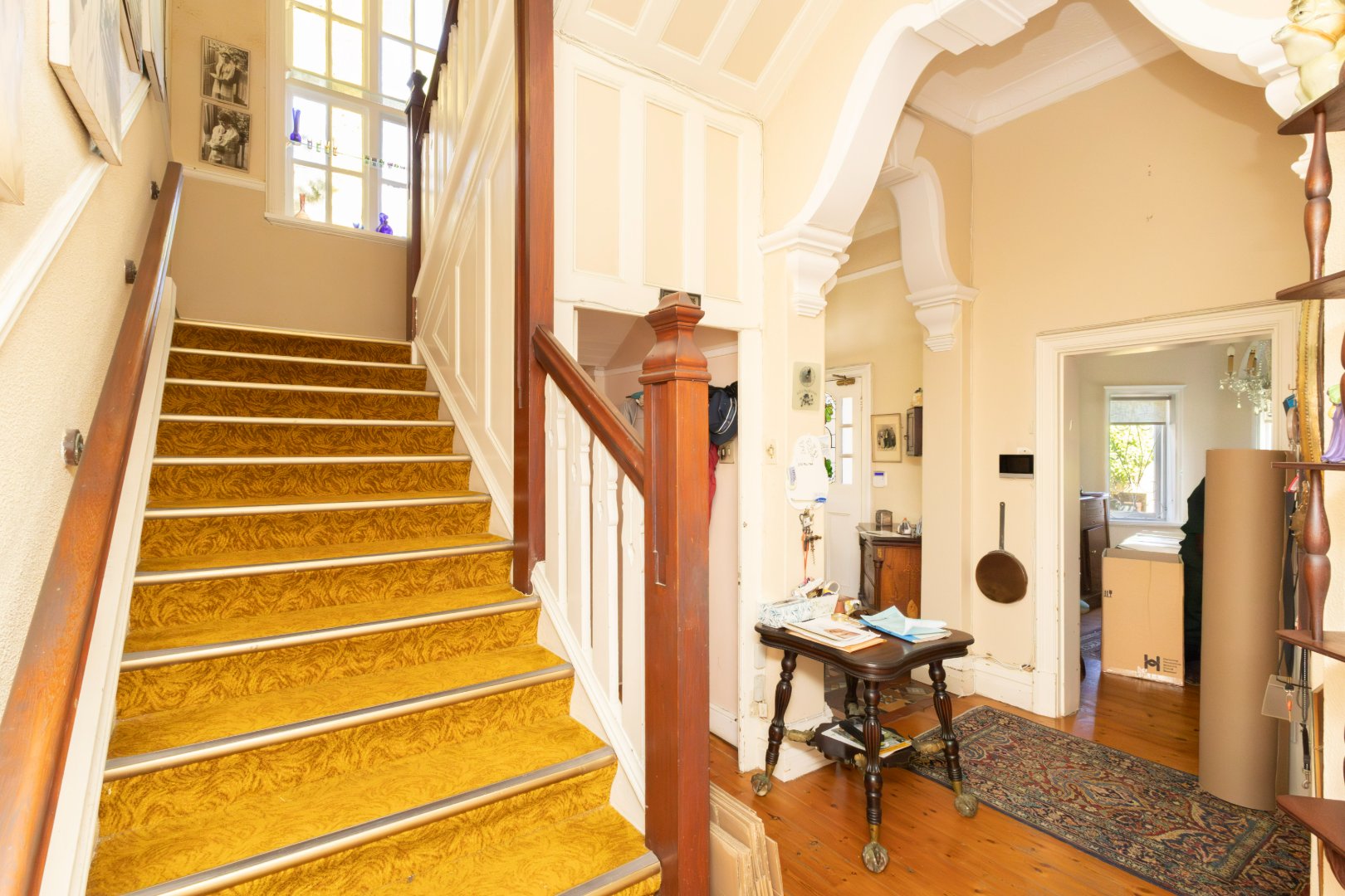Behind its classic façade lies an expansive family home defined by soaring ceilings, elegant proportions, and sun-filled interiors. The lower level is dedicated to grand living and entertaining, with multiple formal and informal spaces flowing effortlessly to the established garden and large swimming pool offering an idyllic setting for both family life and hosting on a generous scale. Upstairs, the accommodation is privately positioned, with the potential to offer up to 5 bedrooms or 4 bedrooms and a study, ideal for a family.