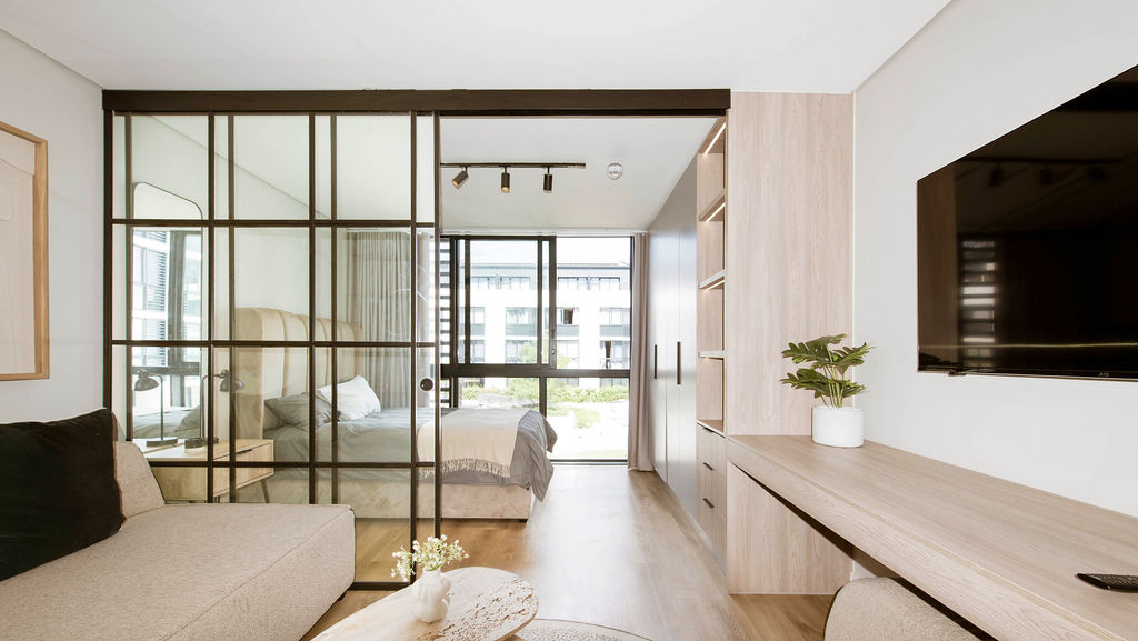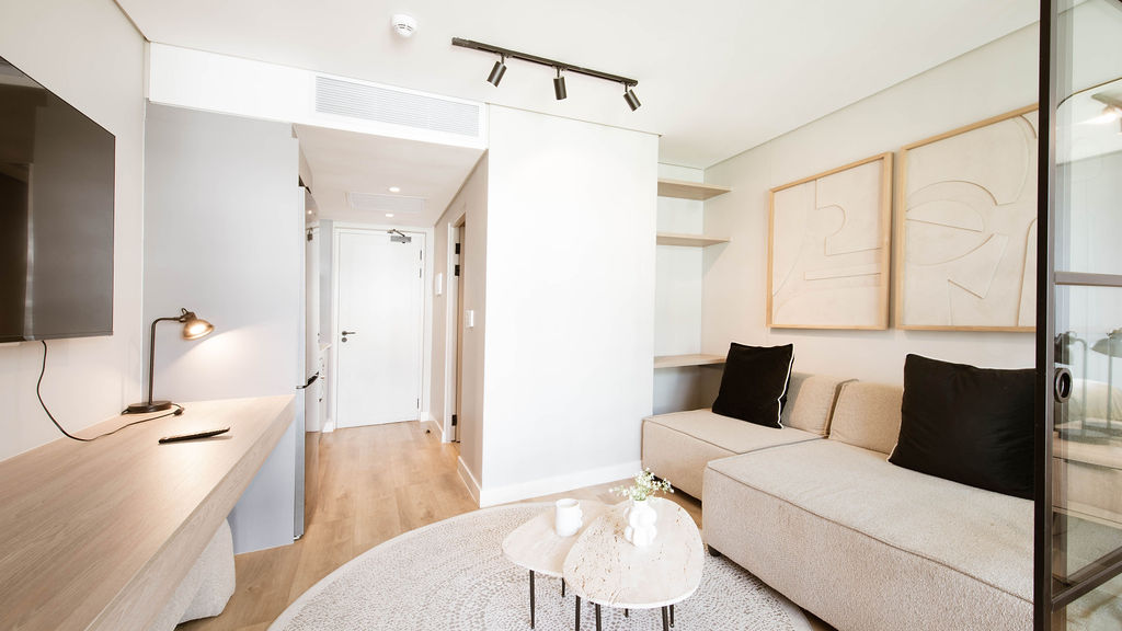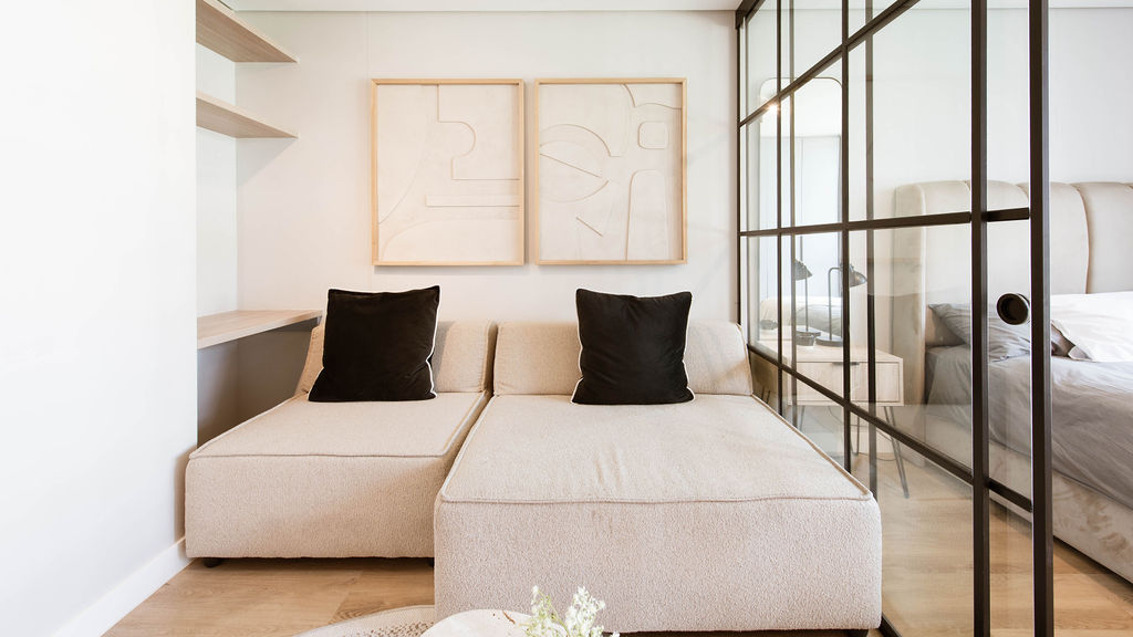 From the moment you step inside, the layout makes sense. The open-plan design feels spacious and uncluttered, while a cleverly positioned separate sleeping area creates privacy without compromising light or flow. Large windows draw in natural light, giving the apartment an airy, welcoming feel throughout the day.