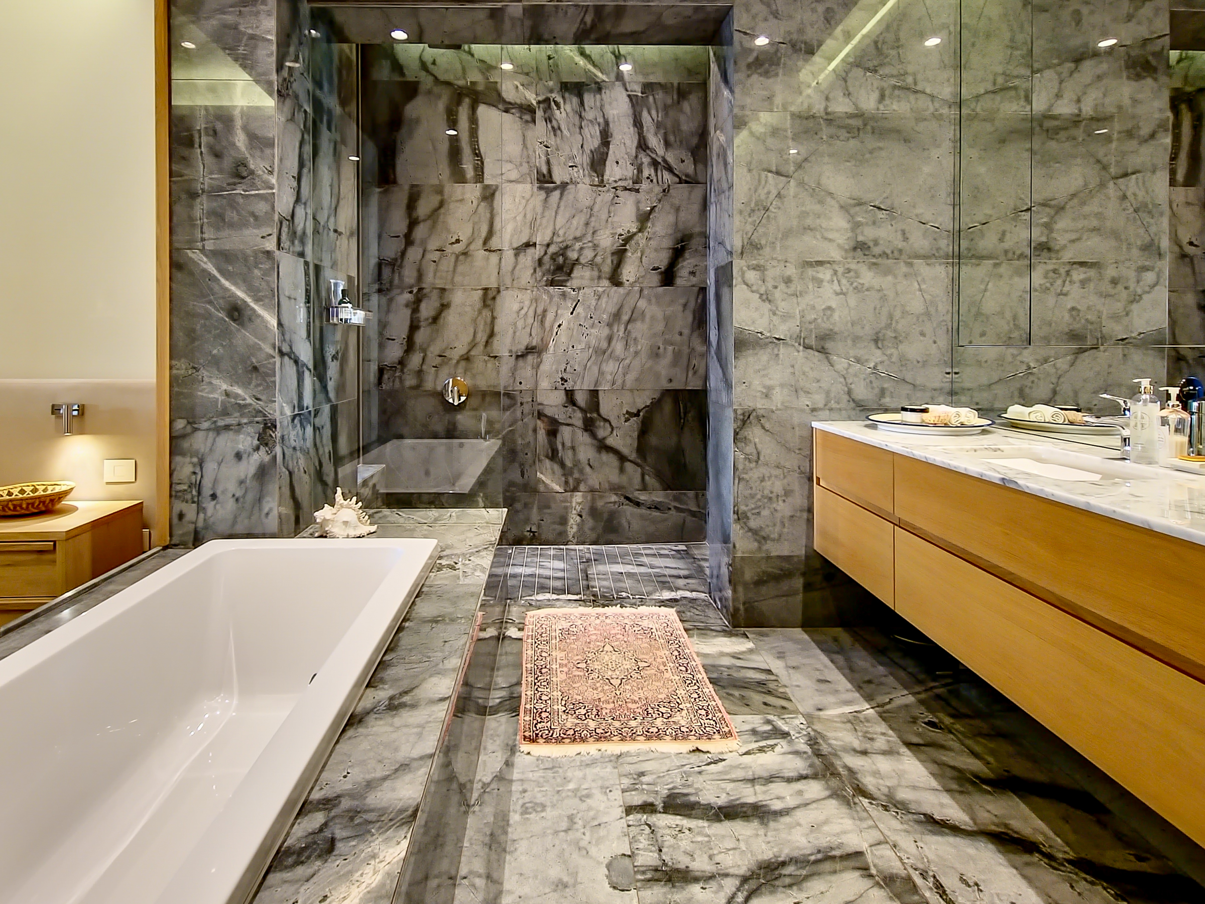 Bedroom 1 is the main bedroom and has a walk-in closet, jacuzzi, sauna, and a swimming pool with sea views.