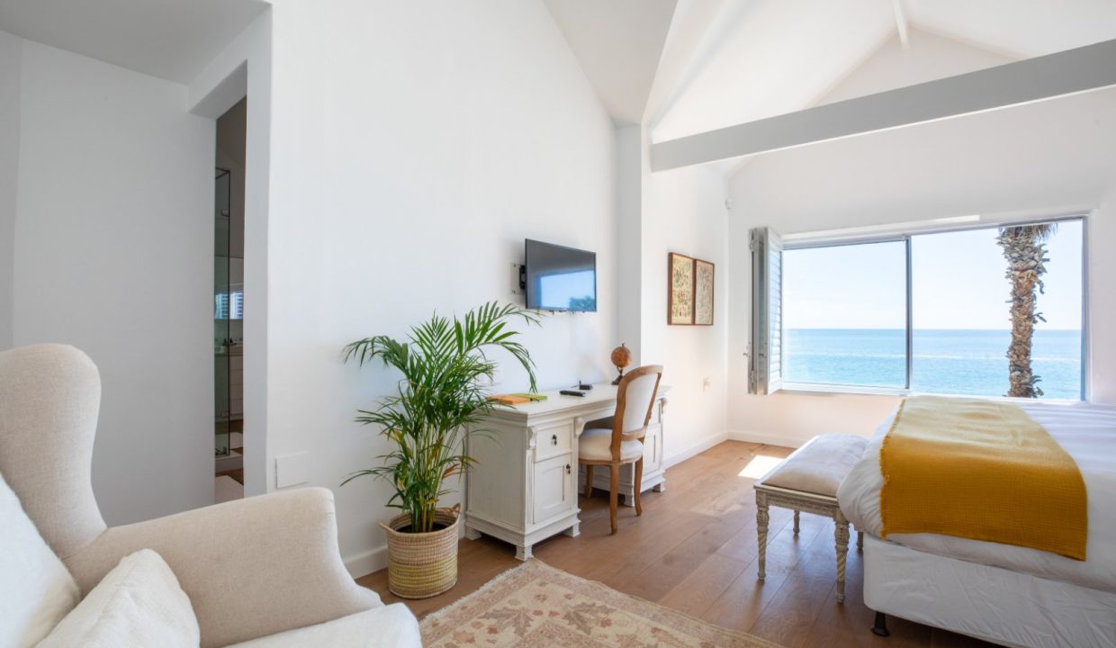 There are 3 bedrooms, all en suite, with the main bedroom on the ground floor. This bedroom is sizeable and overlooks third beach. The main bathroom has a large bath overlooking the ocean, a double shower and double basins.