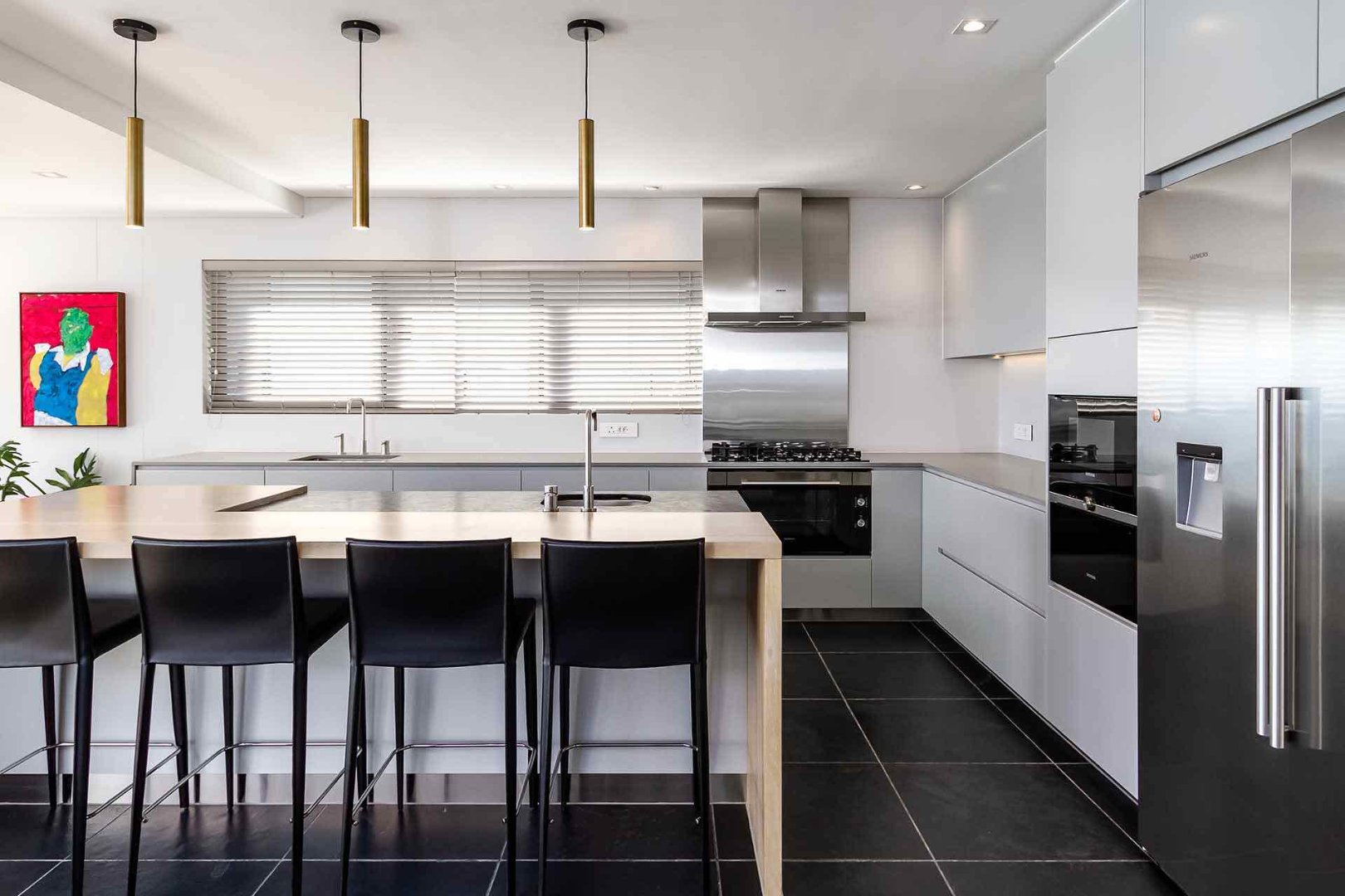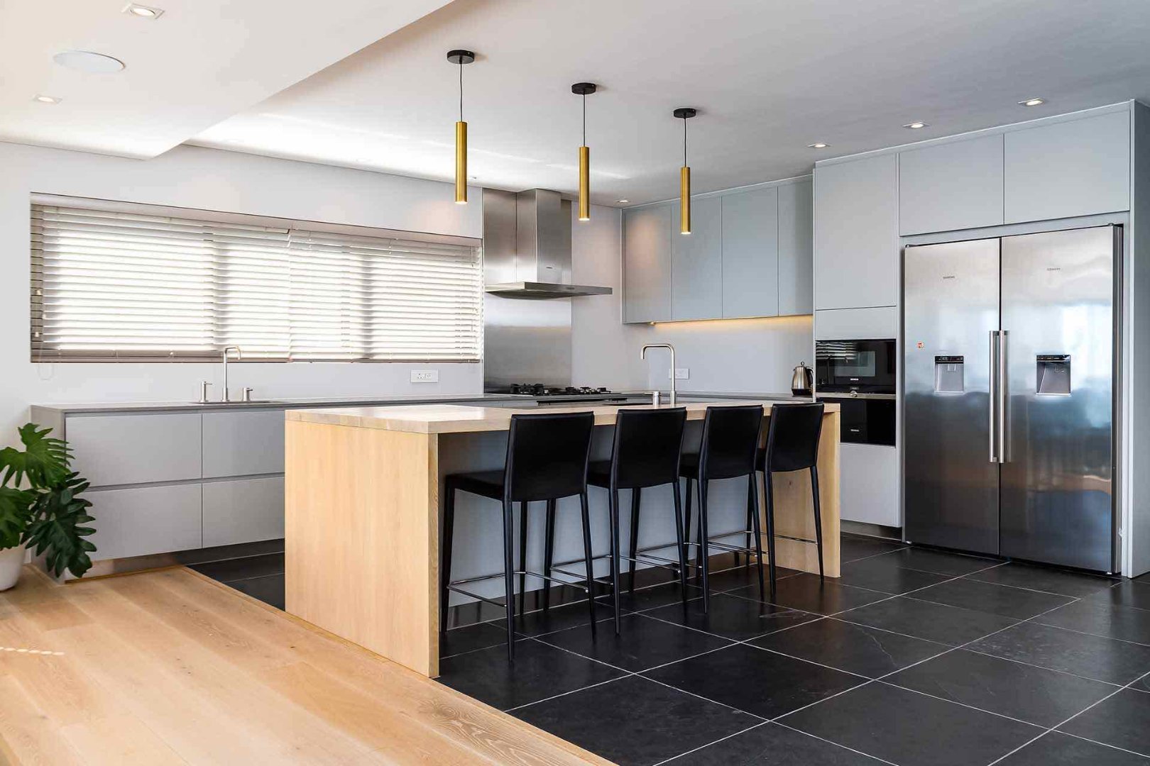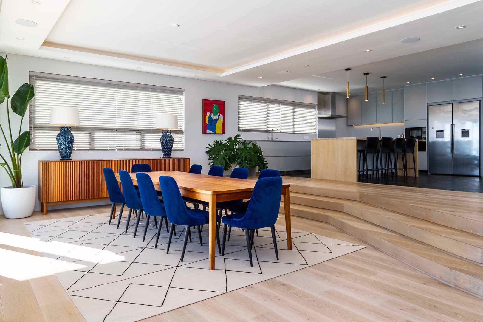 The main living level forms the heart of the home featuring a magnificent, open-plan expanse that blends a state-of-the-art designer kitchen with elegant dining and lounge areas. Every corner has been conceived for connection and comfort, from intimate family moments to large-scale entertaining. The space opens onto one of several sun-drenched terraces, where retractable glass doors erase the boundary between indoors and out.