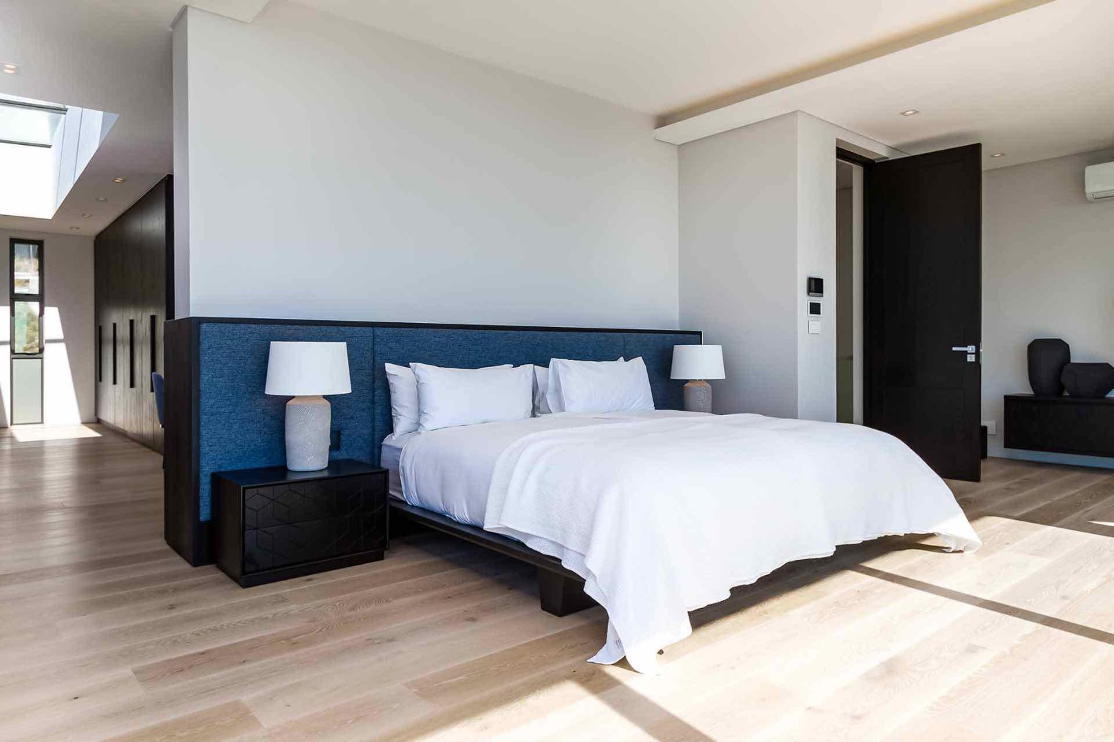 From the moment you enter, you are greeted by a grand sense of openness with vast glass panels frame the ever-changing ocean views, while natural light floods the interiors, enhancing the home’s clean lines and refined textures. The fluid layout invites seamless movement between the living spaces, creating an atmosphere of serenity and understated sophistication.
