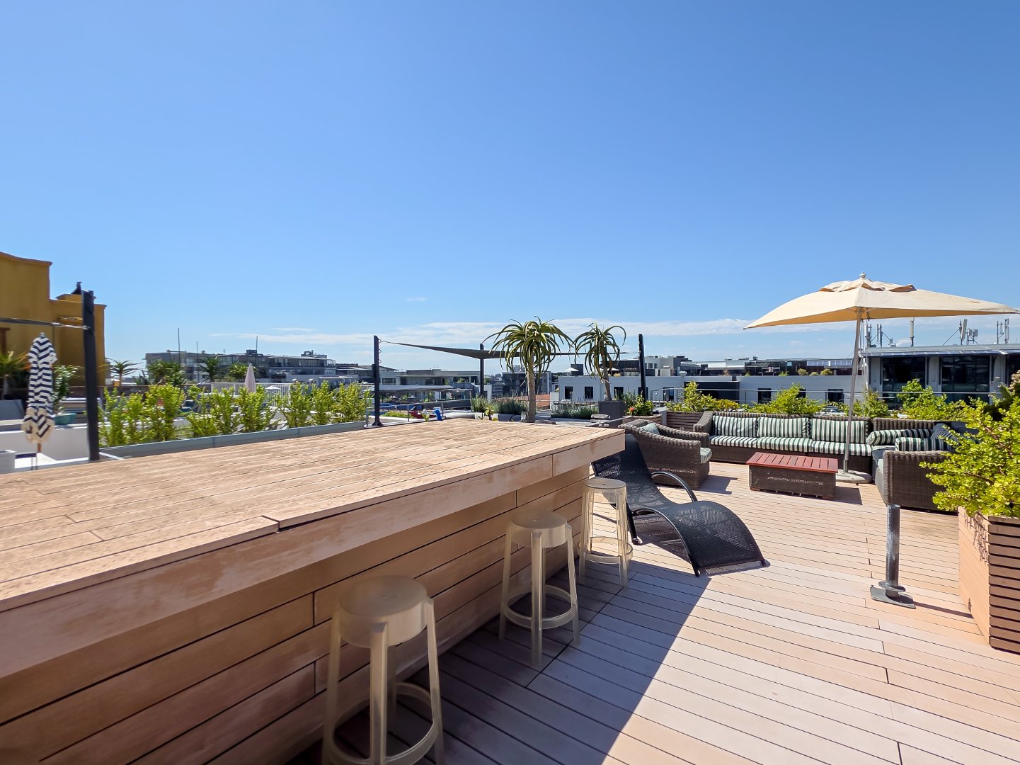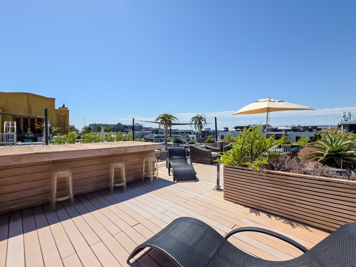 A key feature of the property is the rooftop level. The smaller terrace accommodates outdoor dining for six, while the larger terrace provides relaxed lounge seating and enjoys impressive views of Table Mountain. There is a reserved parking right in front of the house.