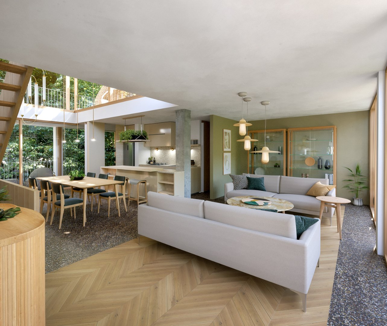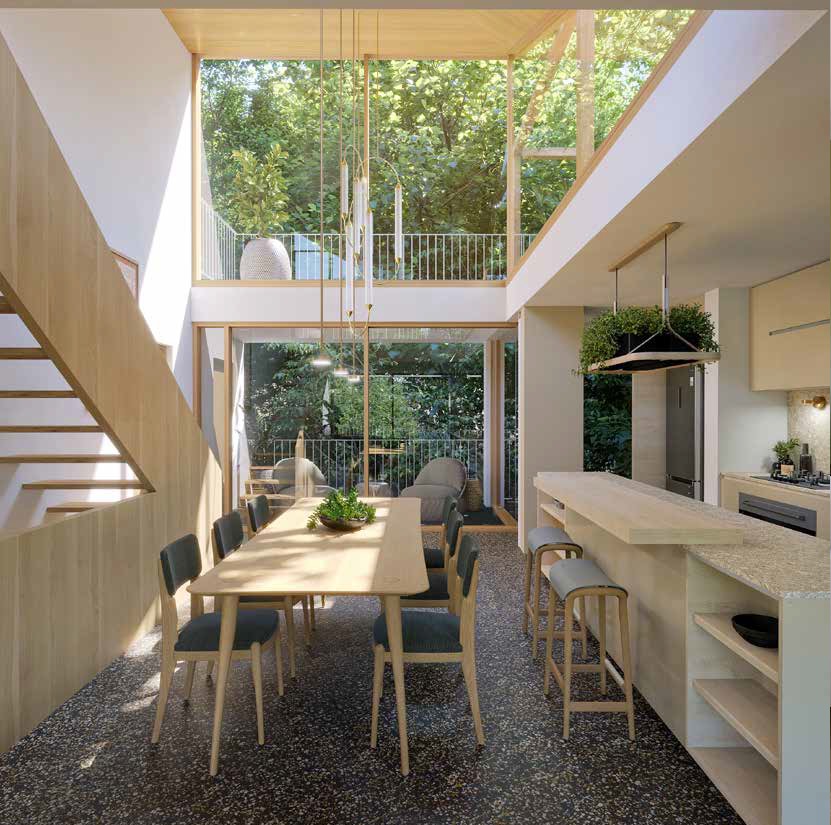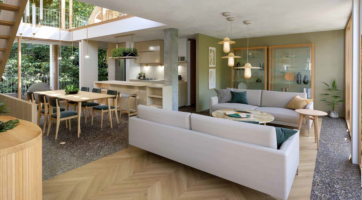 Each residence at 36 on Higgo is crafted with an artist’s touch and an explorer’s heart. Natural textures — stone, timber, and brick — ground the interiors in authenticity, while vast glass panels dissolve the boundary between home and forest. Open-plan living spaces invite the outside in, creating a dialogue between comfort and wild beauty.