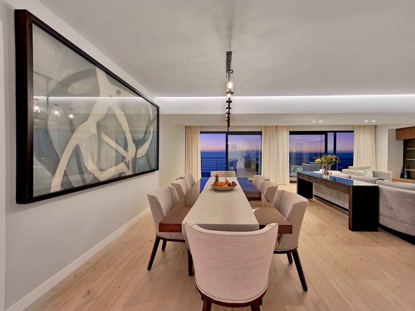 Introducing a stunning newly renovated 9-bedroom villa nestled at the top of Camps Bay, offering breathtaking views of the Atlantic Ocean and Lion’s Head. This remarkable property is perfect for large groups, with panoramic vistas and beautiful sunsets.