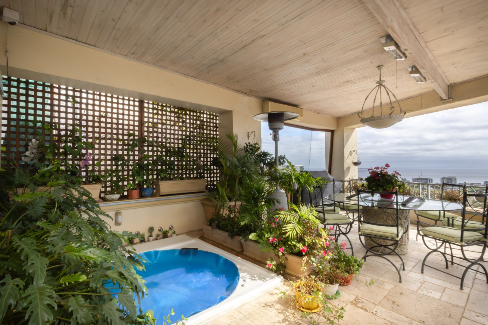 The expansive patio is an entertainer’s dream, featuring a jacuzzi and connecting effortlessly to an elevated rooftop terrace complete with a fire pit — an exceptional space for sunset gatherings, relaxed evenings, and year-round enjoyment.
