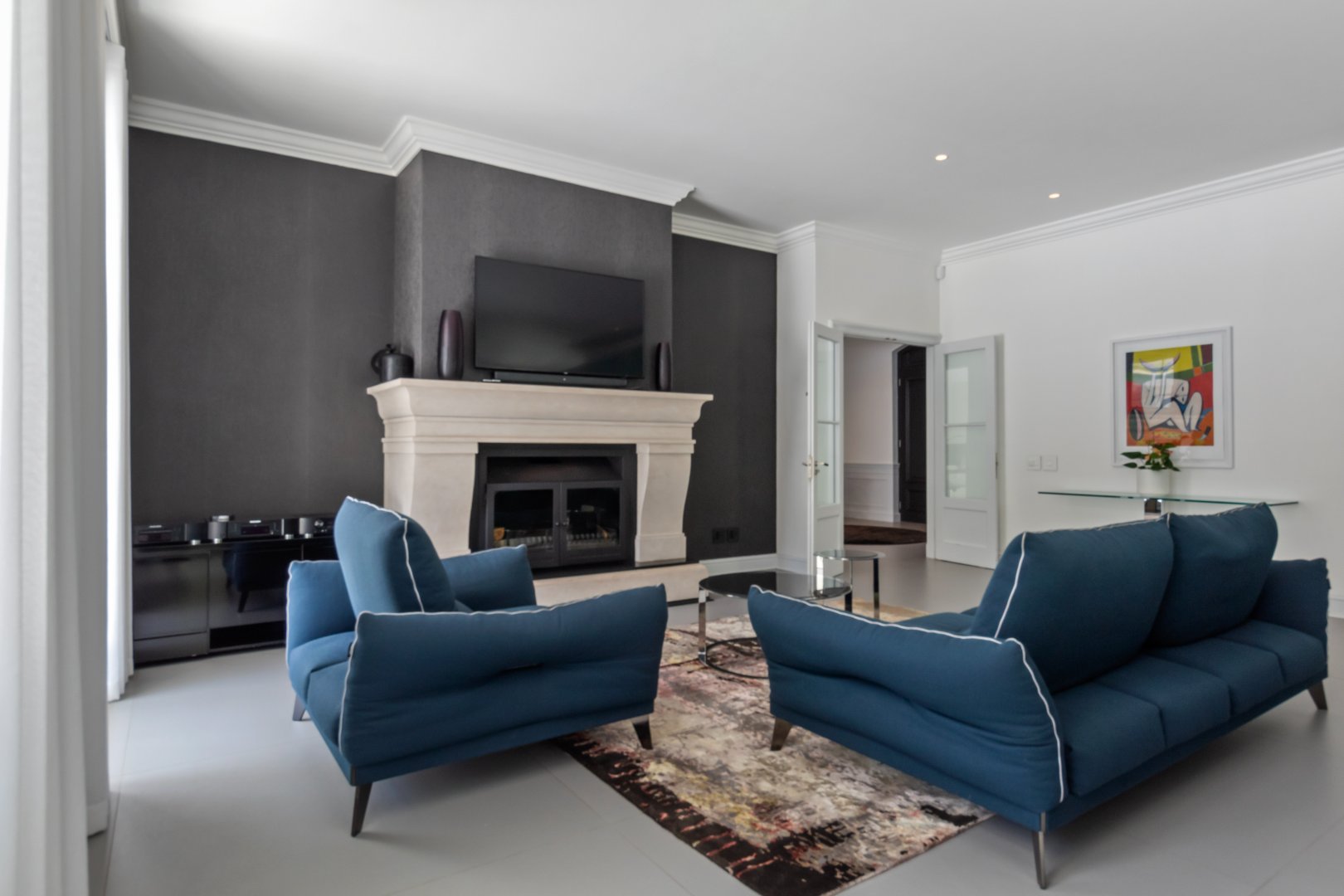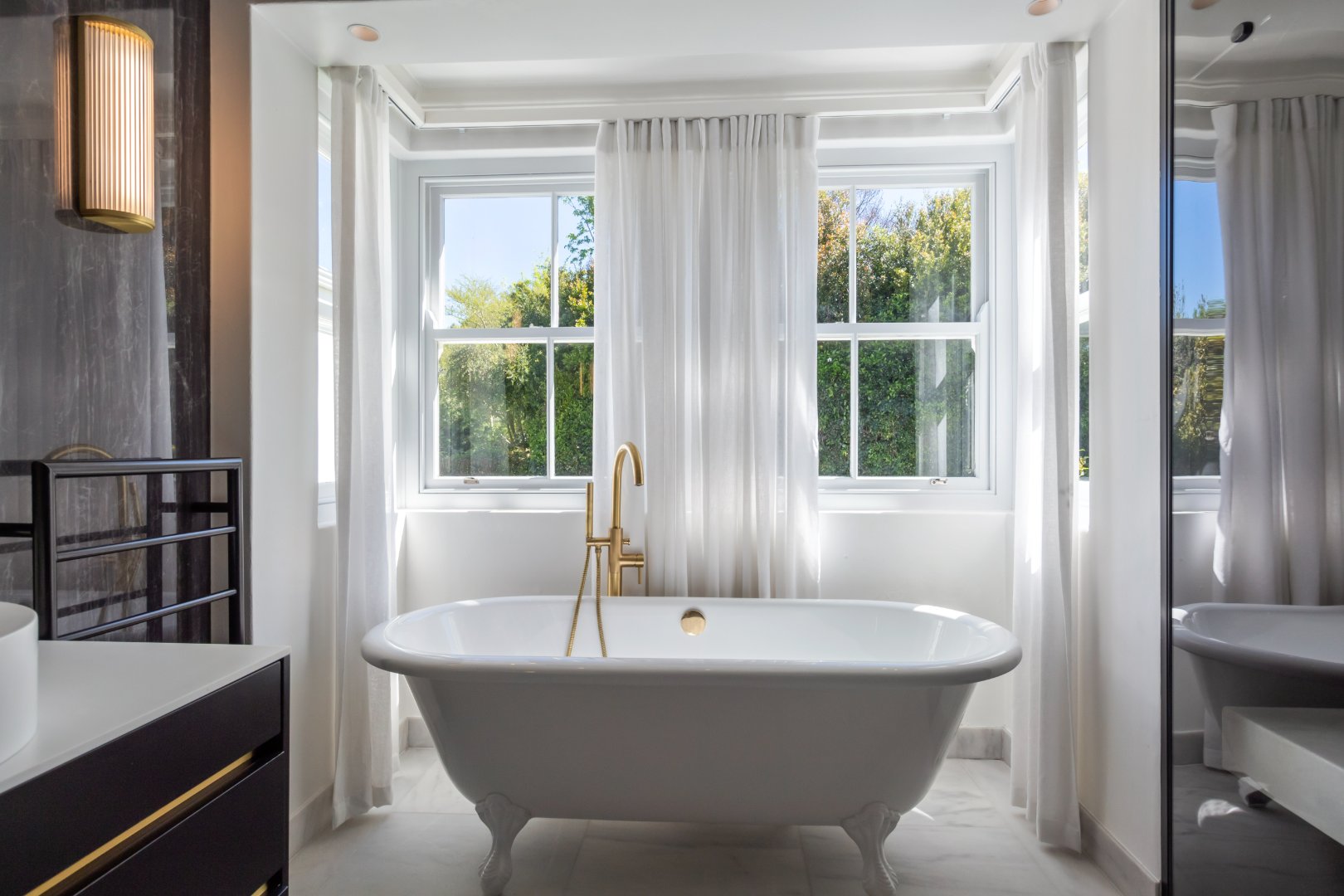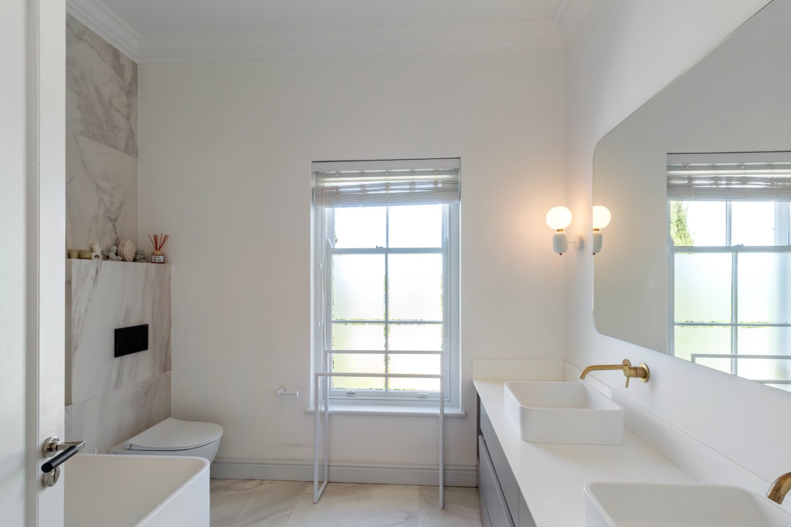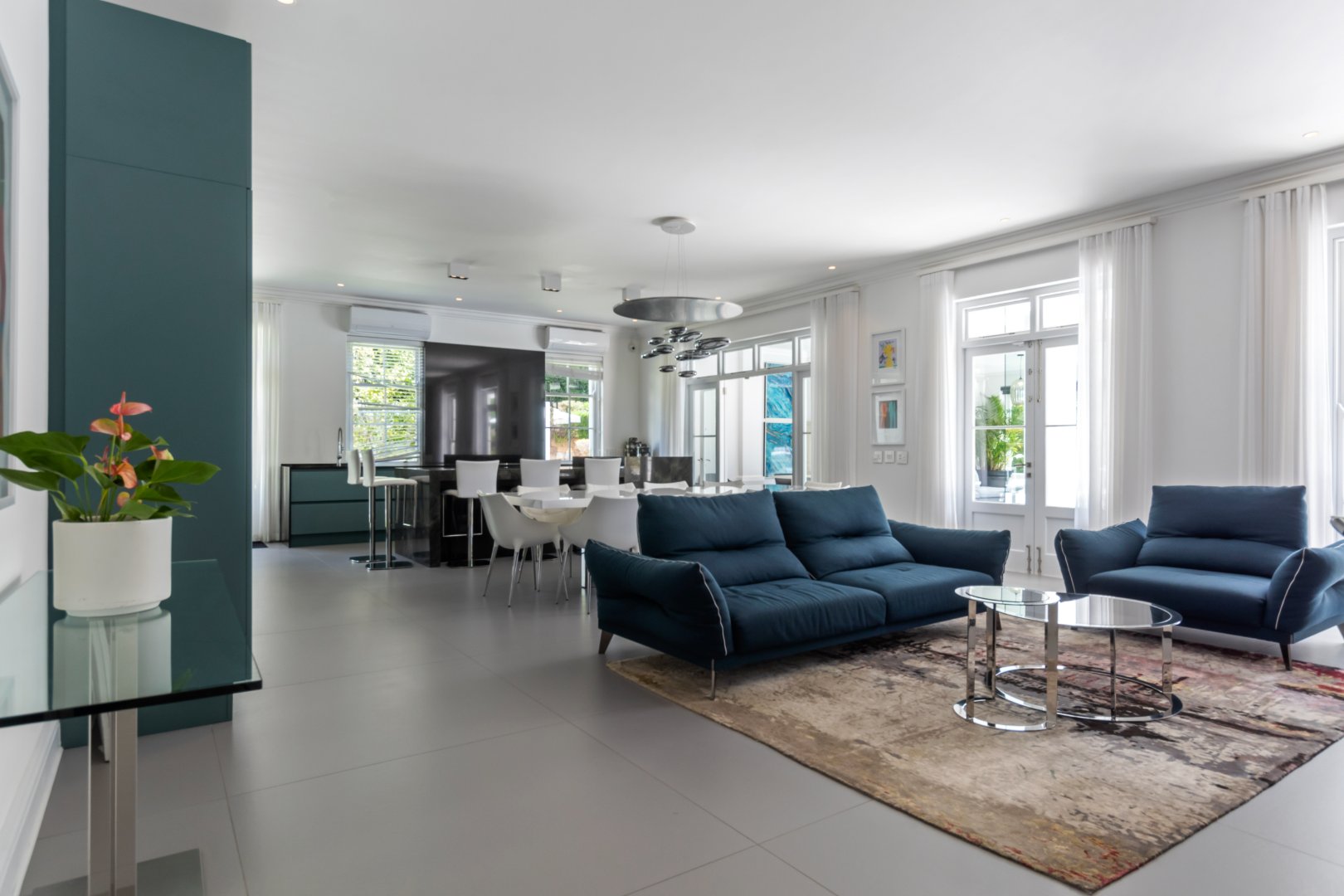 Set in one of Constantia’s most prestigious avenues, this contemporary Georgian residence combines timeless elegance with modern functionality. A tranquil courtyard fountain greets you at the entrance, leading into a home defined by high ceilings, engineered wooden floors, sash windows, and French doors.