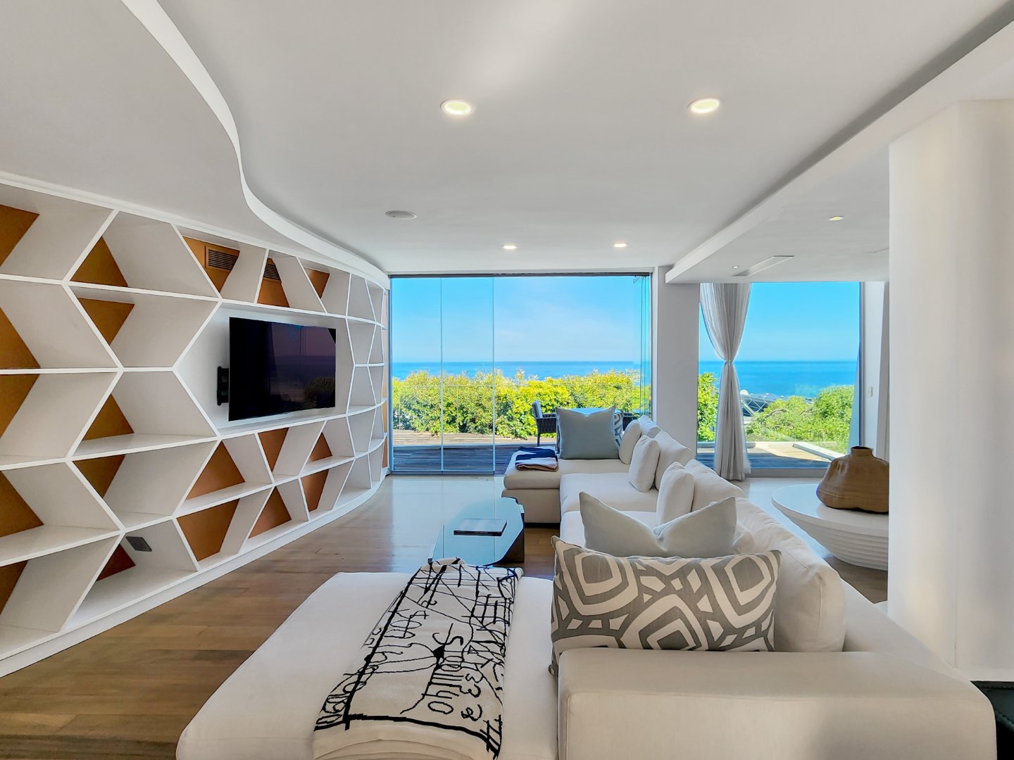 From the moment you enter, you are met with uninterrupted 360-degree views stretching from the glistening Atlantic Ocean to the dramatic slopes of Lion’s Head. The villa’s architectural design embraces its natural surroundings — floor-to-ceiling glass doors, open-plan living spaces, and carefully curated interiors allow the ever-changing light and sea breeze to flow effortlessly through every room.