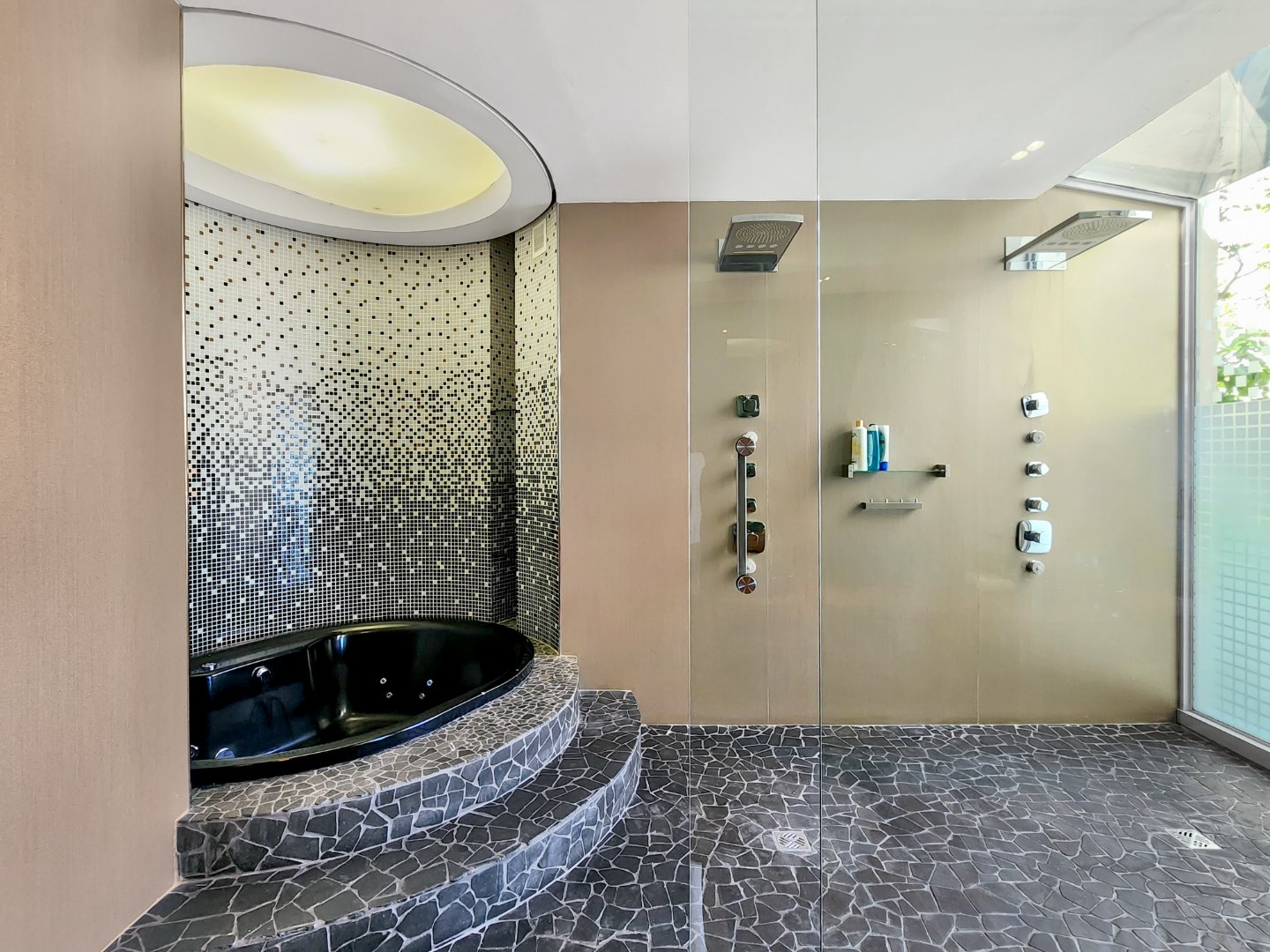 This exceptional residence offers four generous bedrooms, each designed with comfort and privacy in mind. Three are beautifully appointed en-suites that open directly onto the landscaped, wind-sheltered garden — a tranquil space where lush greenery, ocean air, and the sound of waves create a perfect sanctuary. The fourth bedroom, equally refined, provides flexibility for families or visiting guests.