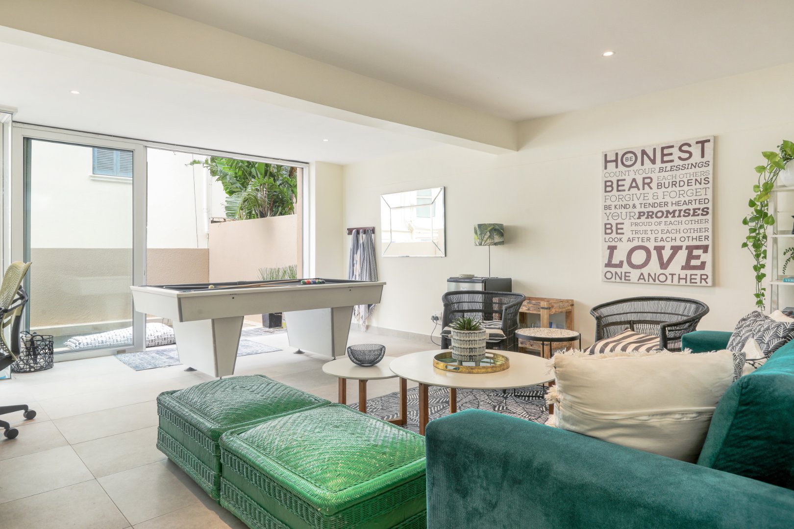 Enter through a secure double garage leading directly into the home. The ground level features a spacious queen bedroom with en-suite bathroom, a fun-filled playroom with a pool table and lounge area, and direct access to the outdoor entertainment area. Outside, you’ll find two comfortable lounges and a private, secluded swimming pool – perfect for lazy afternoons in the sun.