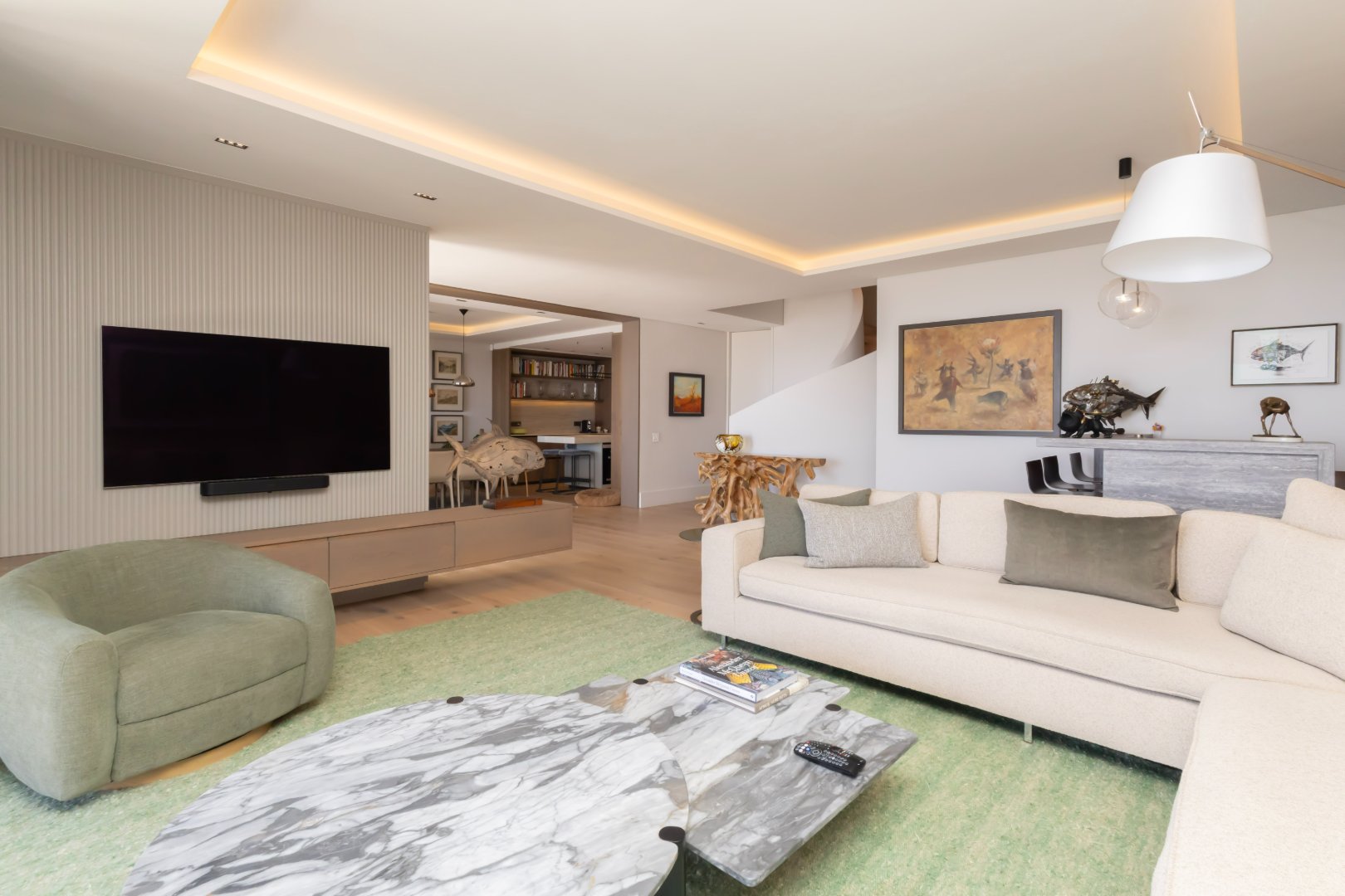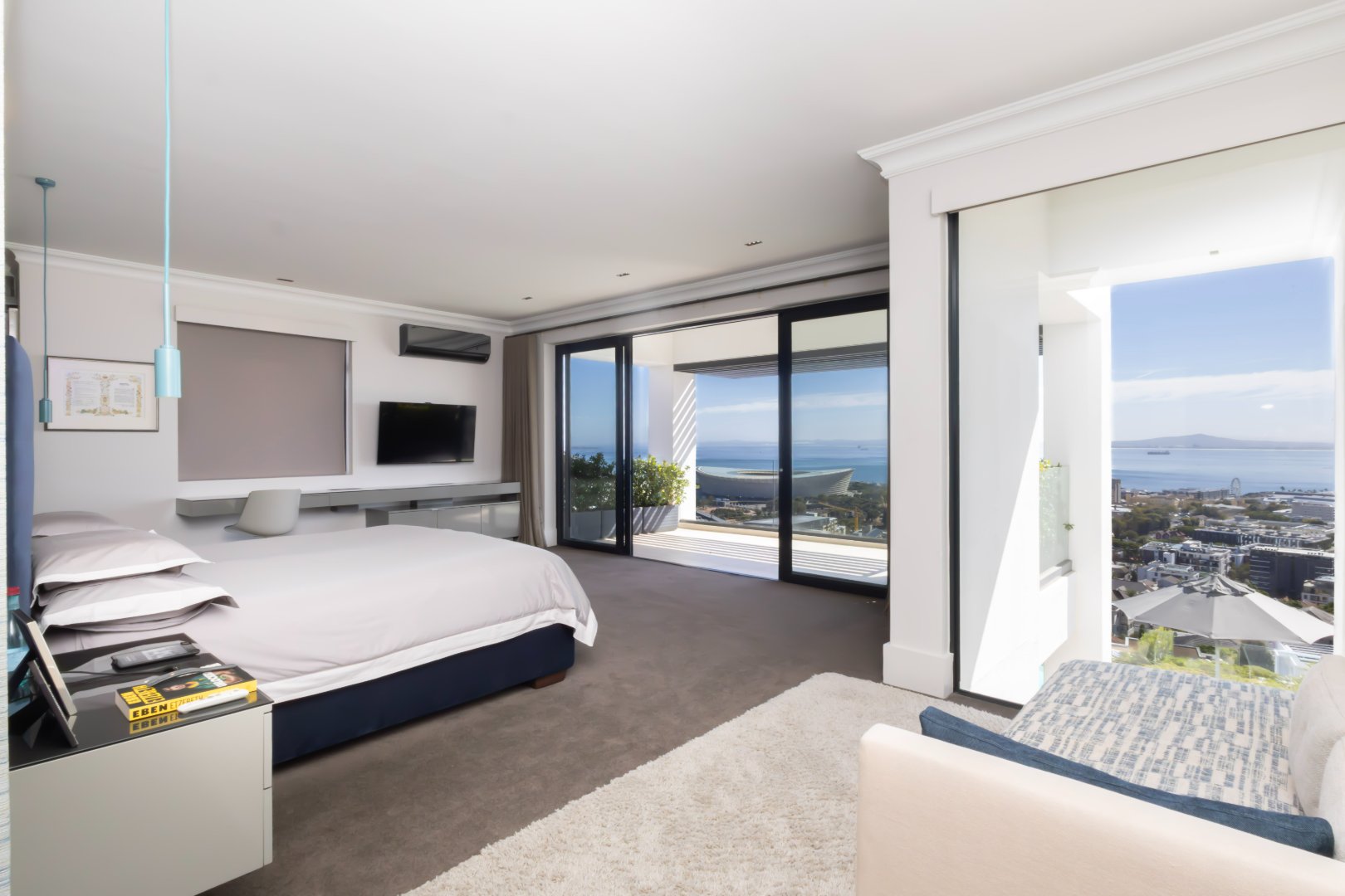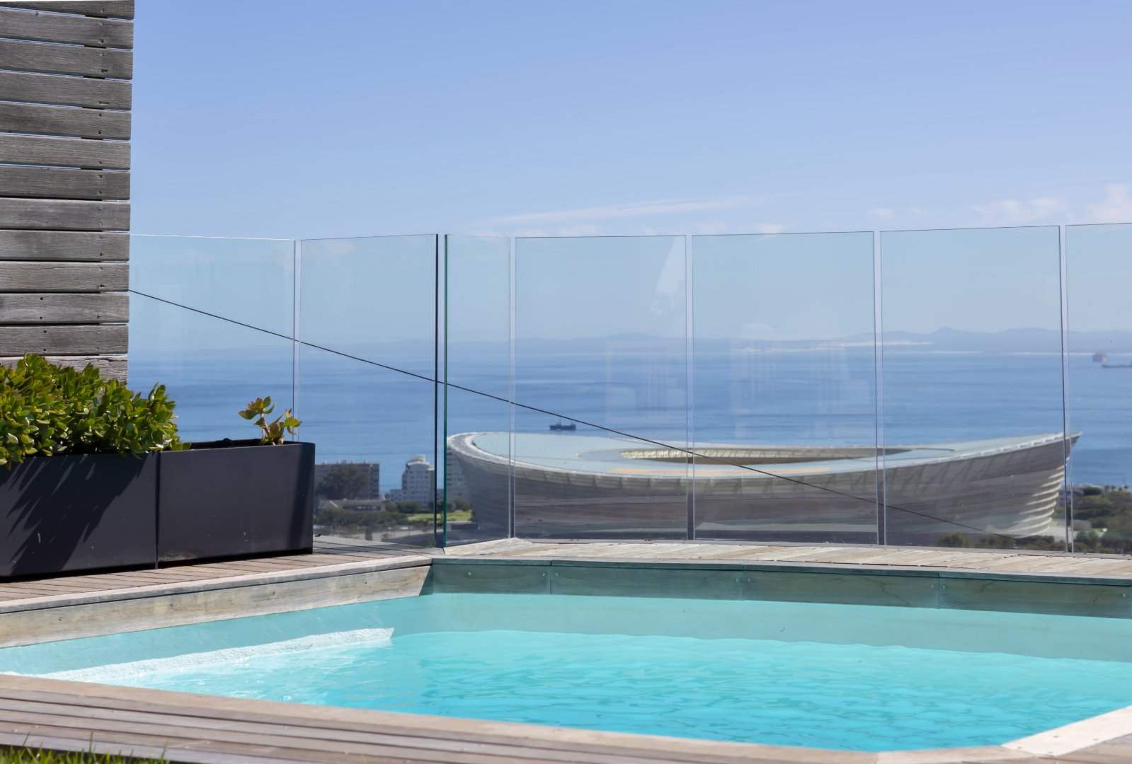Set in an elevated position with sweeping views across the Atlantic Ocean and the iconic Green Point Stadium, this exceptional modern residence offers sophisticated living, effortless indoor–outdoor flow, and luxurious comfort throughout.