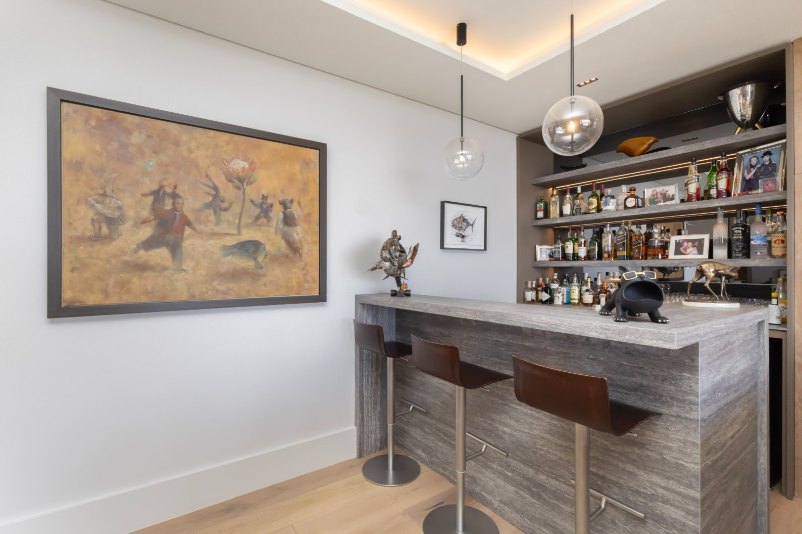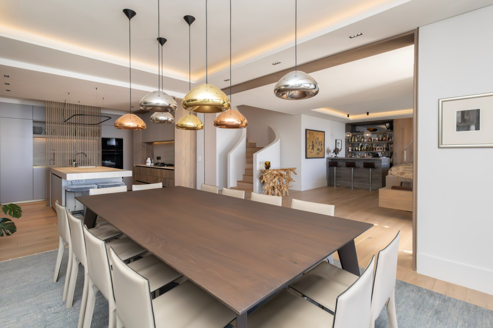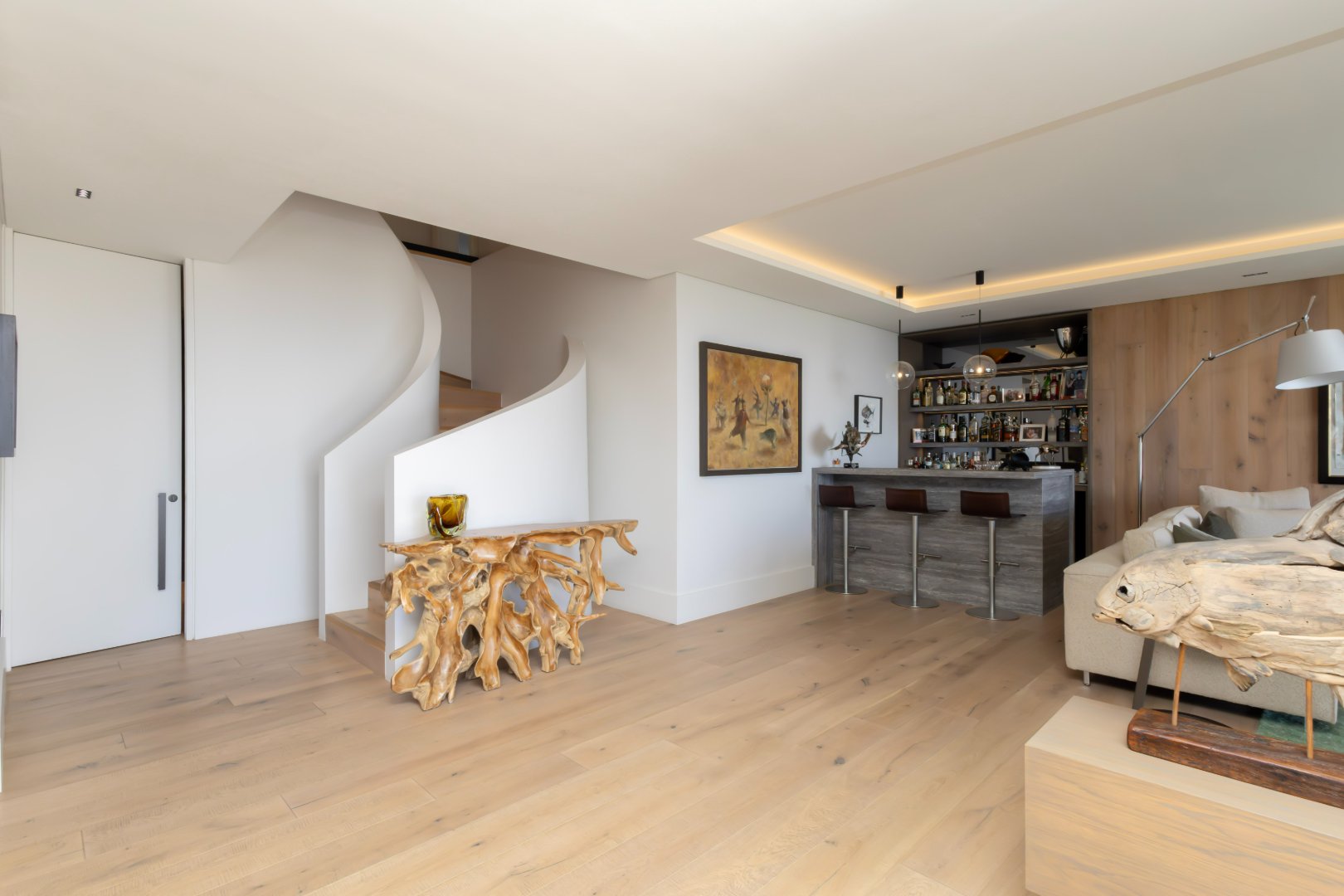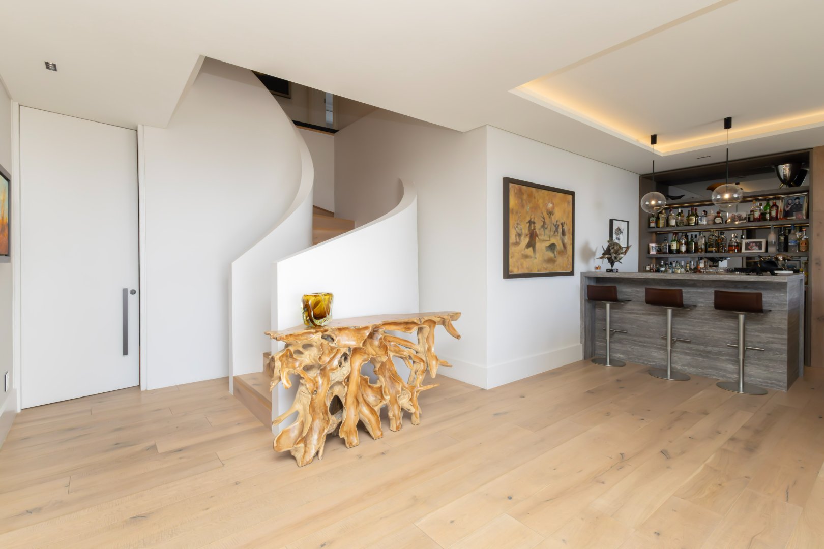 Additional features include a stylish bar and entertainment area, a striking architectural staircase, generous balconies that capture the panoramic views, and secure parking.