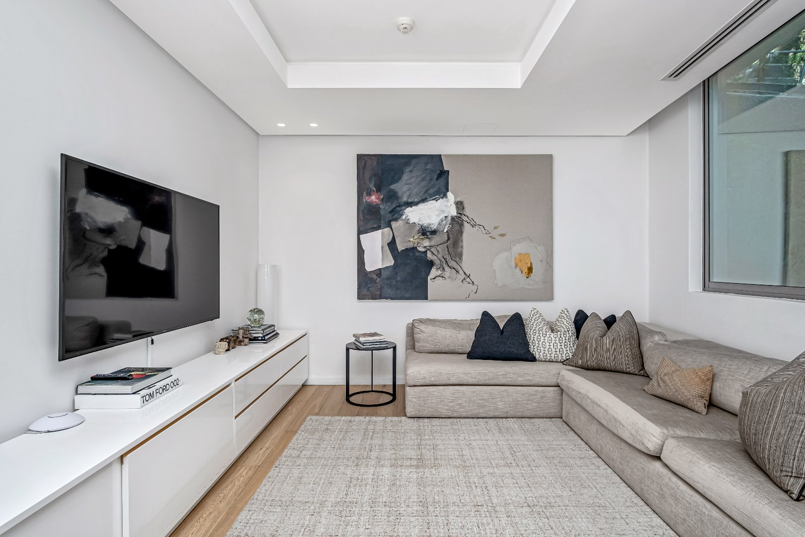 The master opens onto the terrace offering a seamless transition from indoor-outdoor living, and comes complete with an en-suite and walk-in dressing room. The further two bedrooms are also generous in size en–suites and both offer large bursts of natural light. The unit comes complete with fully automated audio-visual lighting. 3 private and secure basement parking bays and an additional storeroom.