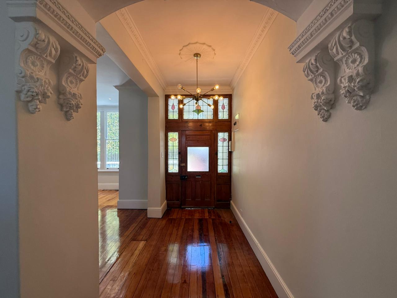 The opulent main bedroom suite features a beautifully appointed ensuite bathroom, while two additional bedrooms and a sleek second bathroom ensure exceptional comfort for family or guests. Outdoor living is equally impressive, with a serene back courtyard perfect for alfresco dining and a charming front porch that completes the home’s warm and inviting appeal.