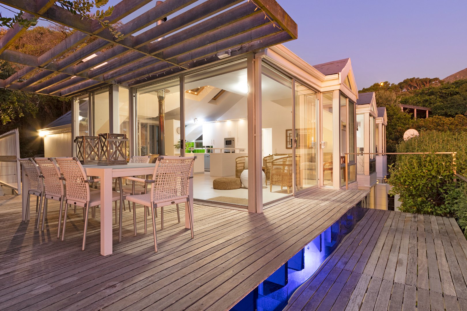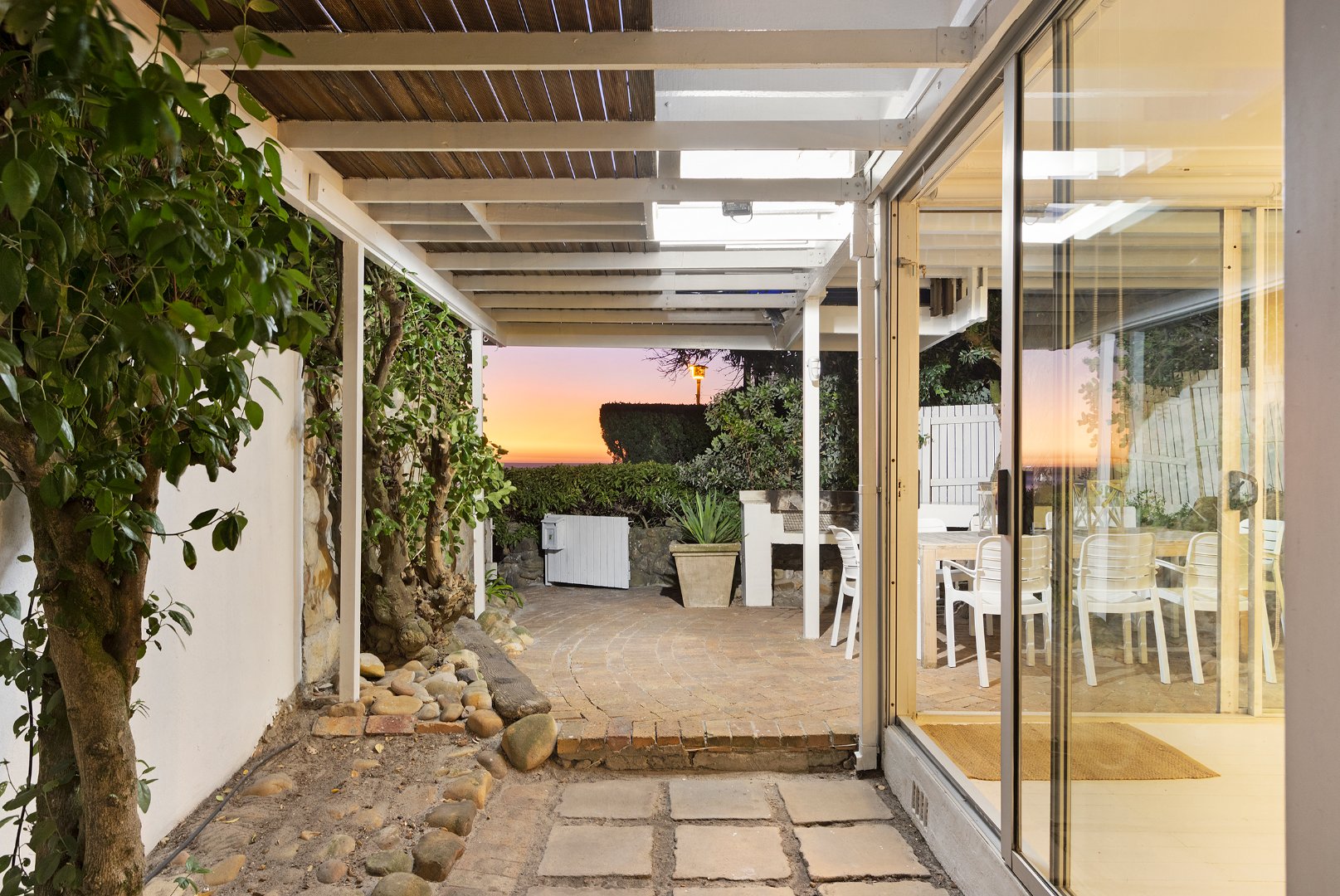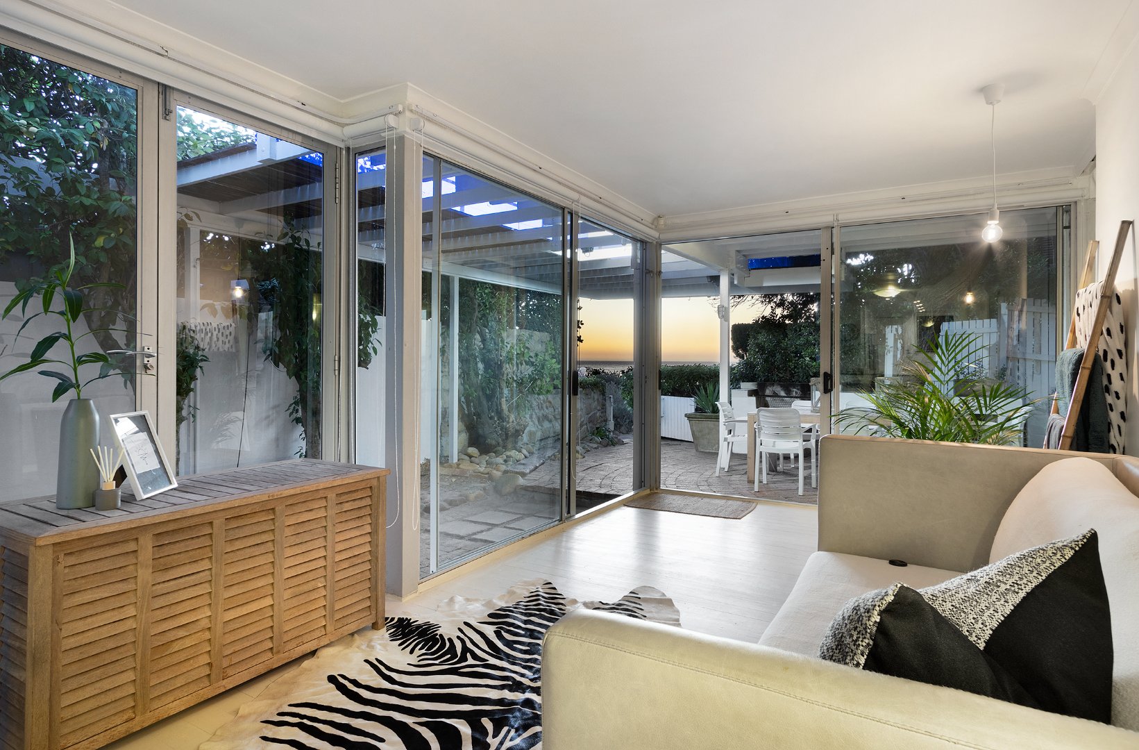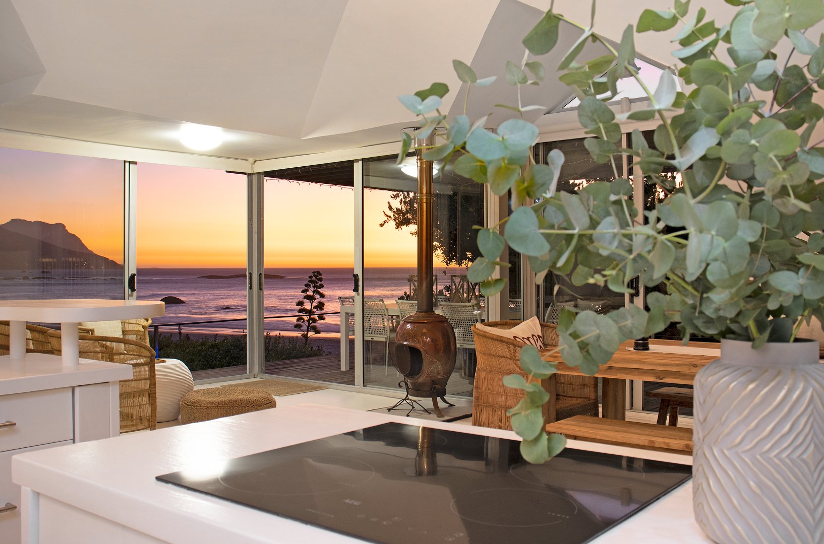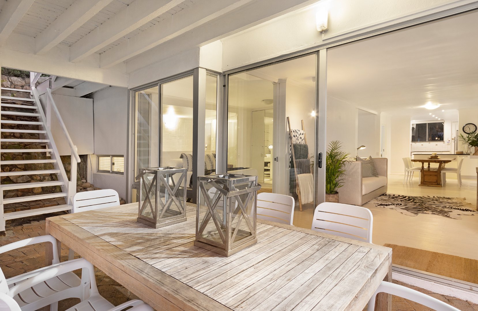 Set directly on the pristine white sands of The Glen, this charming 4-bedroom bungalow offers the ultimate beachfront retreat. Nestled between boulders and trees, the property combines rustic coastal charm with modern comforts, making it one of the few Atlantic Seaboard beach homes with direct beach access and proximity to restaurants.