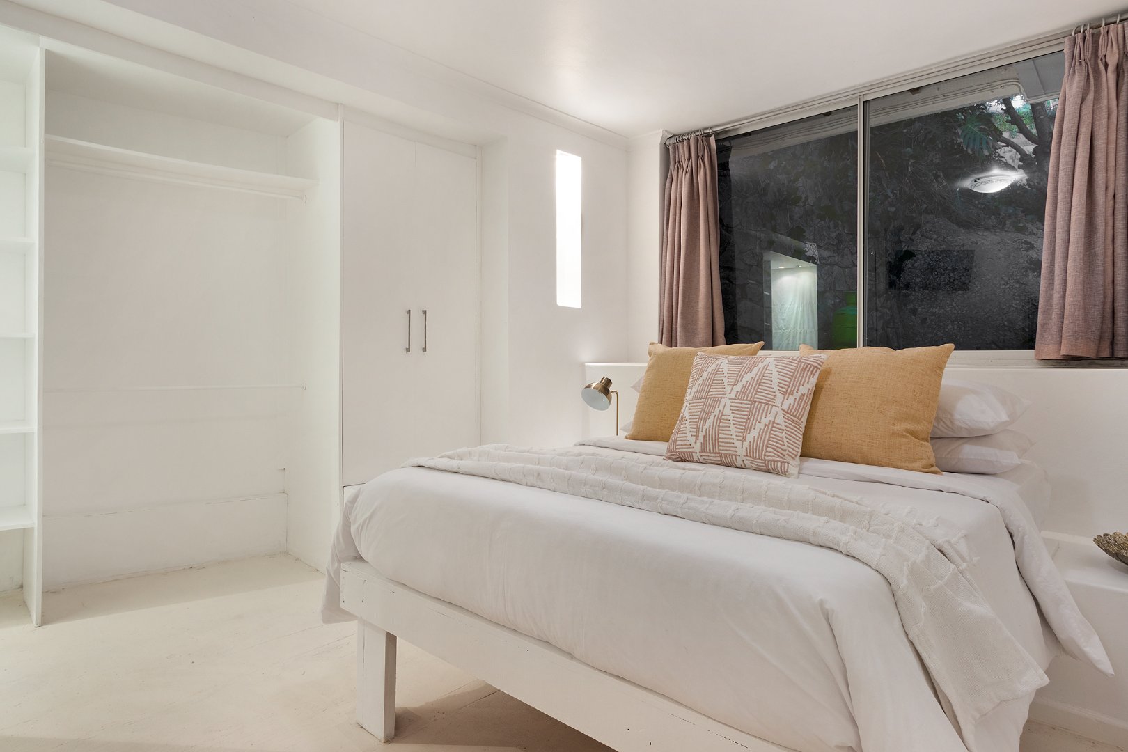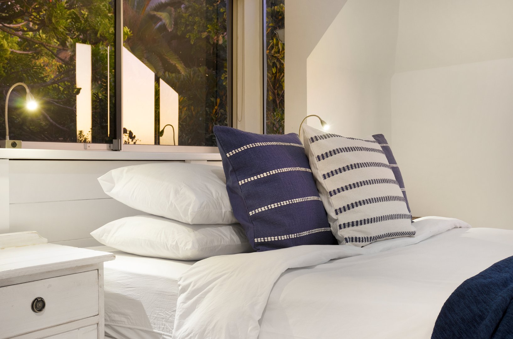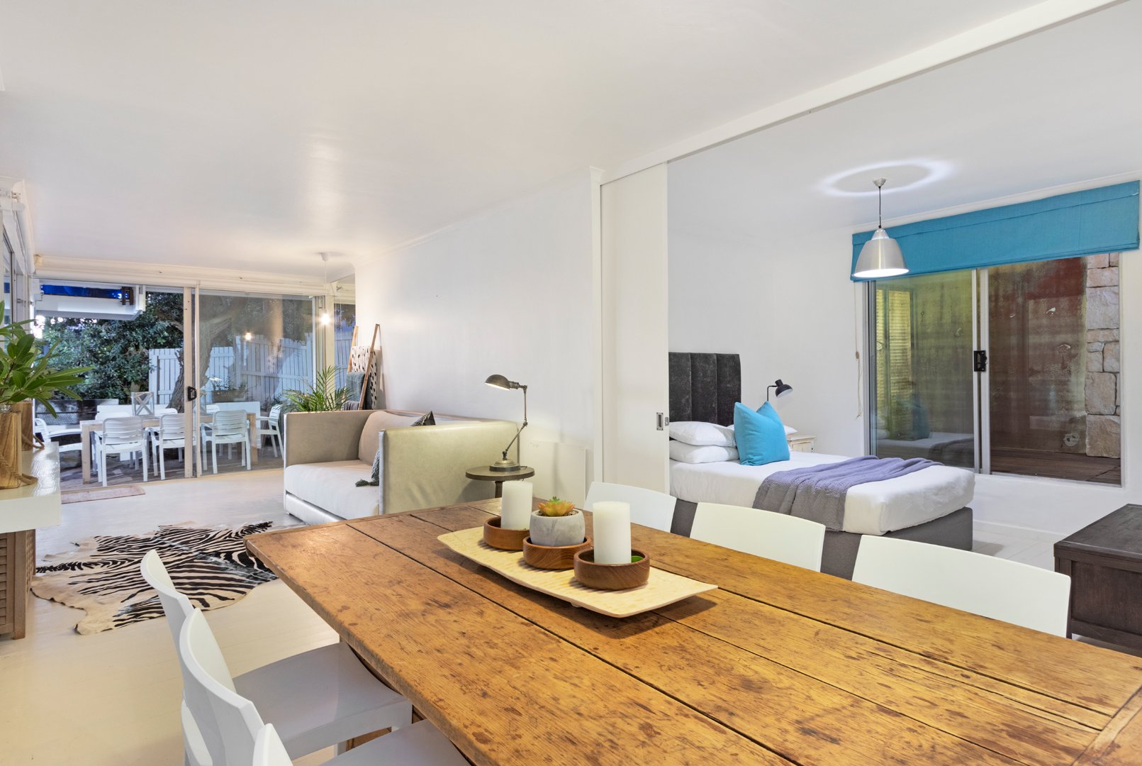 Living Areas: Open-plan lounge and dining with skylights, indoor fireplace, air-conditioning, reading/kids’ room