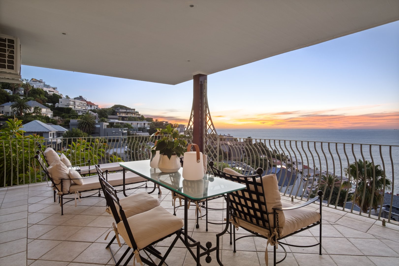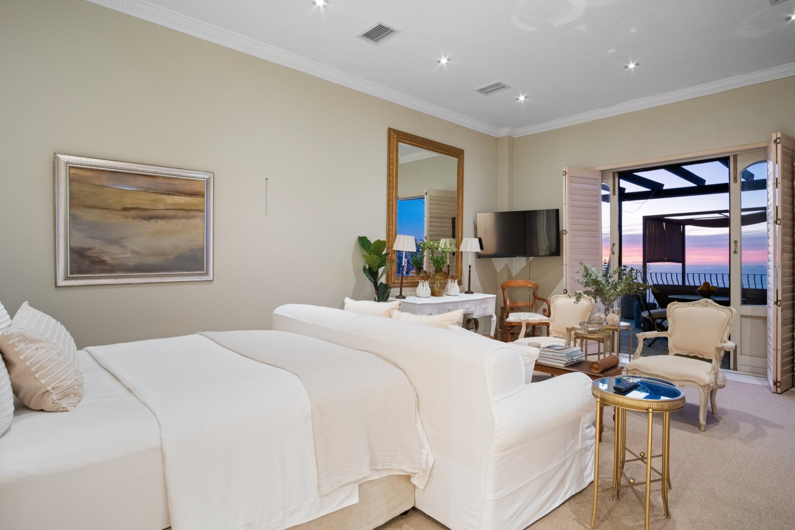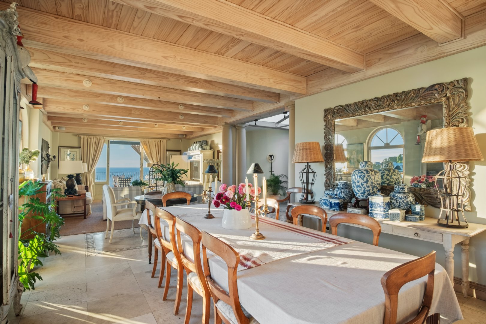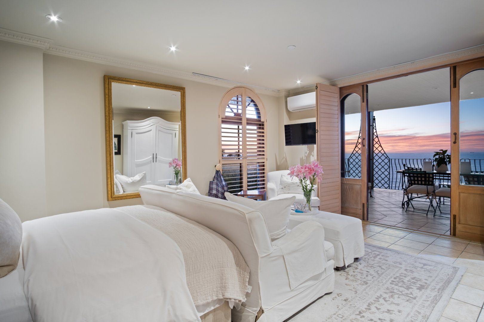 Designed with elegance and comfort in mind, the residence offers four spacious bedrooms and four-and-a-half bathrooms, each thoughtfully positioned to maximise privacy, natural light, and the remarkable ocean outlook. The generous proportions and timeless finishes throughout the home create an atmosphere of understated luxury, blending classic Mediterranean influences with the relaxed sophistication of the Atlantic Seaboard.