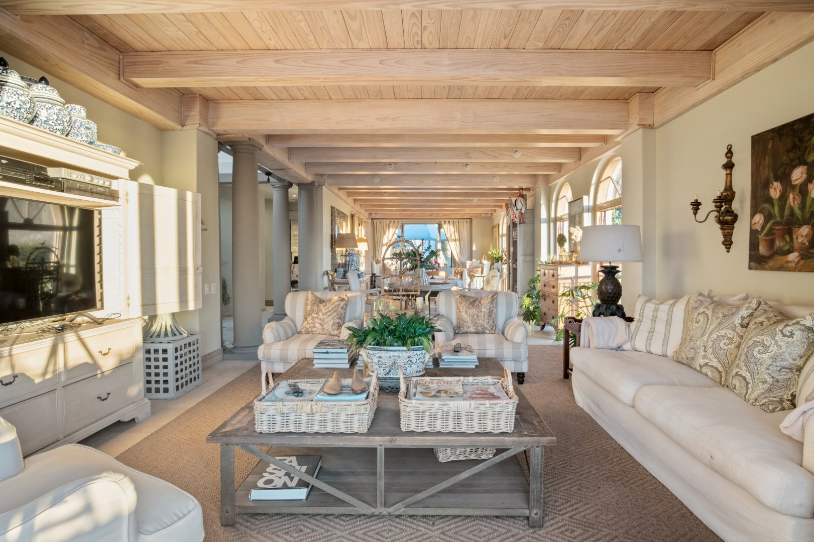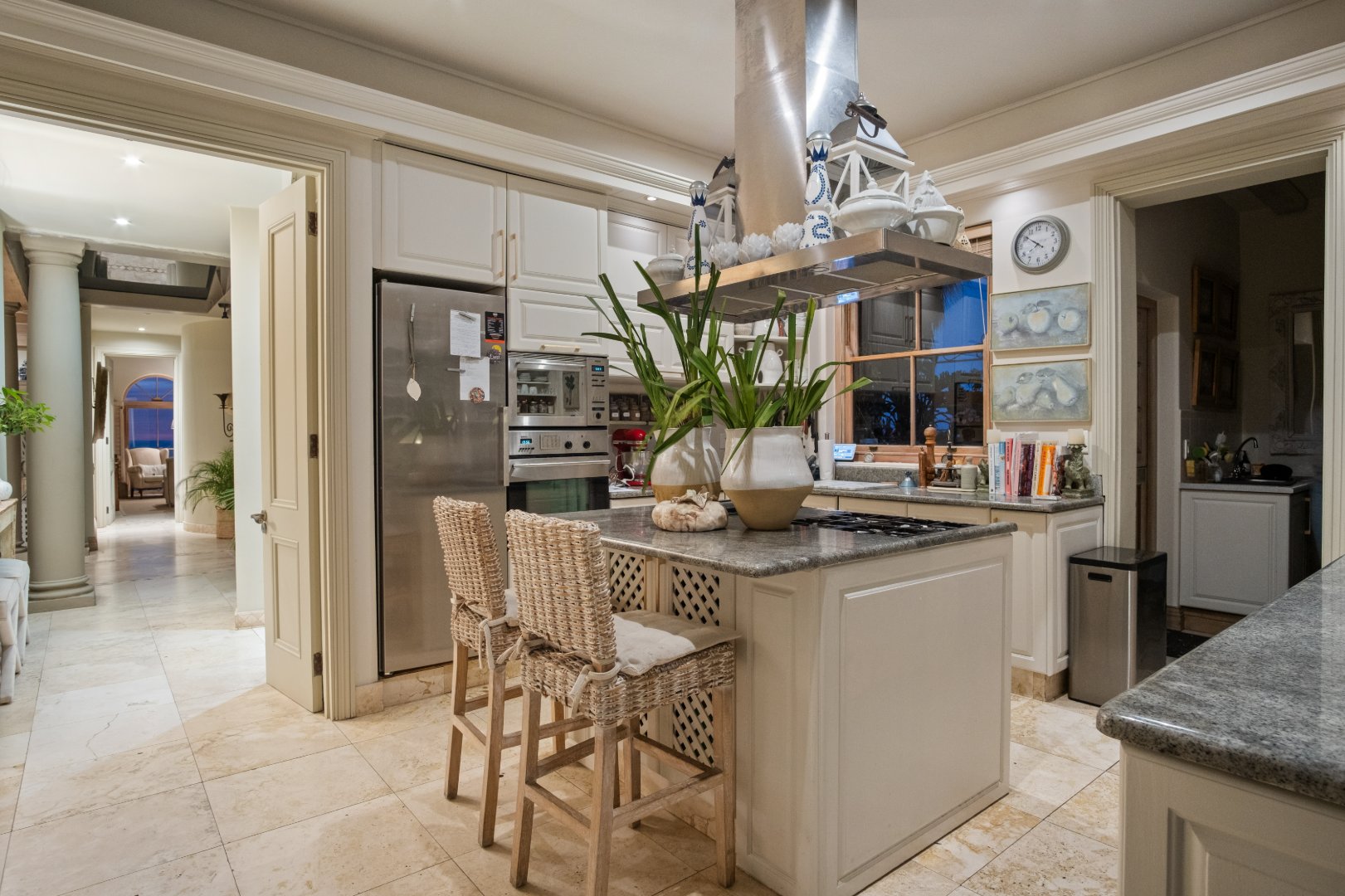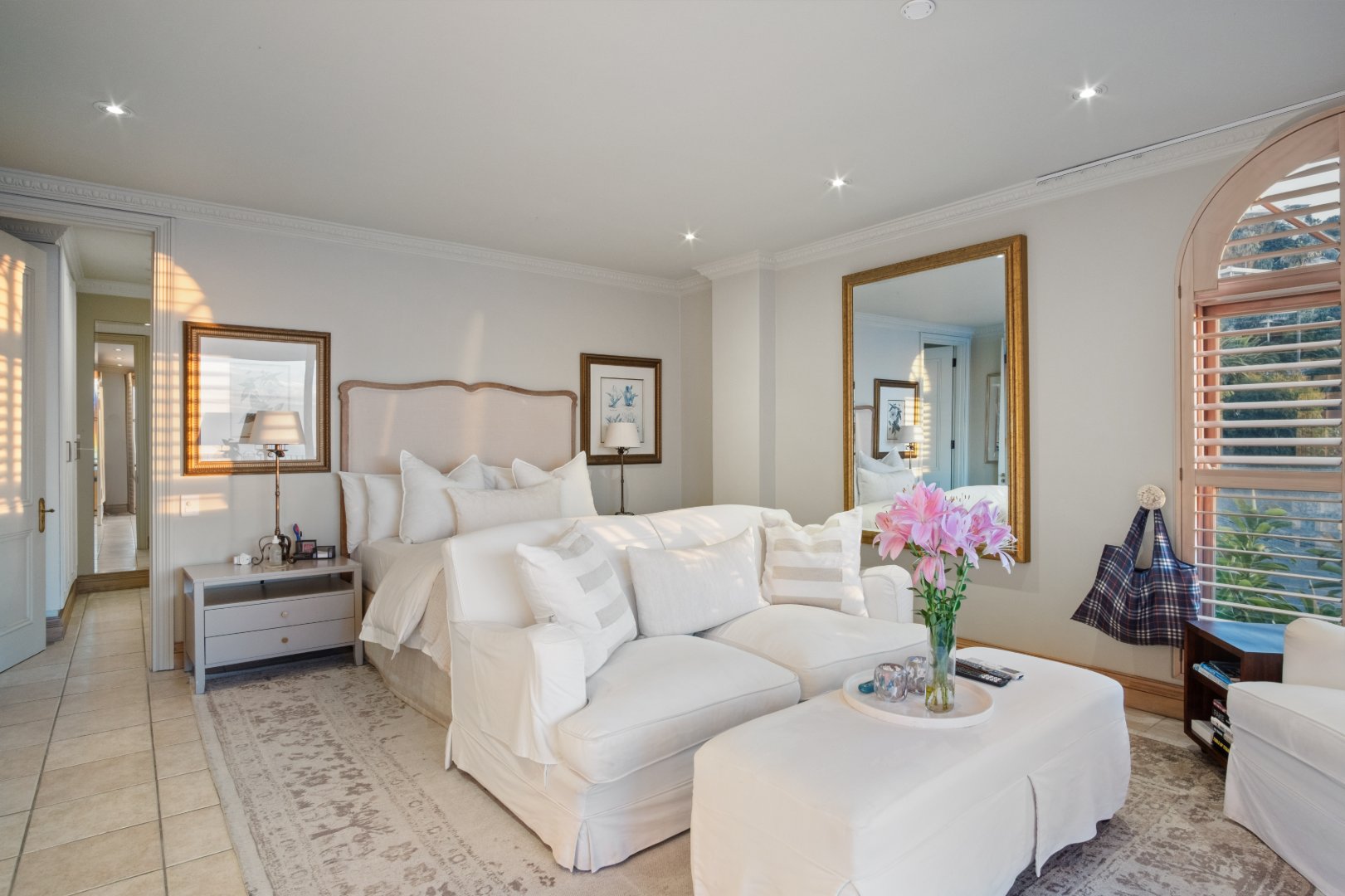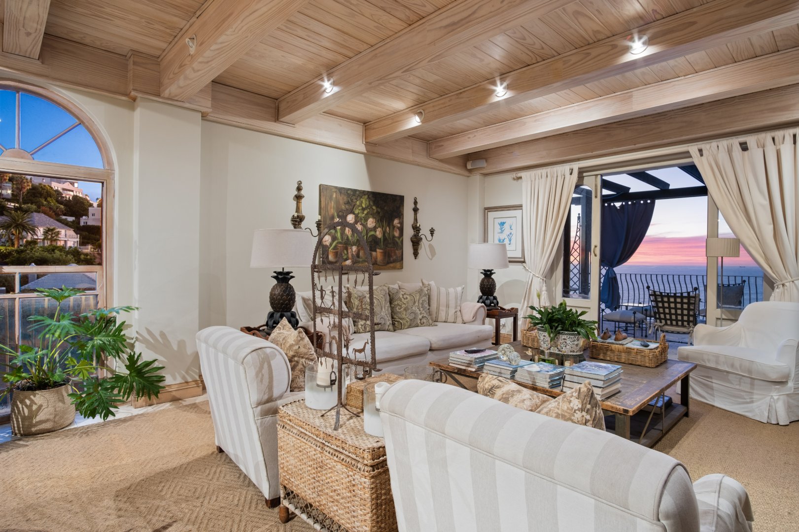 Designed with elegance and comfort in mind, the residence offers four spacious bedrooms and four-and-a-half bathrooms, each thoughtfully positioned to maximise privacy, natural light, and the remarkable ocean outlook. The generous proportions and timeless finishes throughout the home create an atmosphere of understated luxury, blending classic Mediterranean influences with the relaxed sophistication of the Atlantic Seaboard.