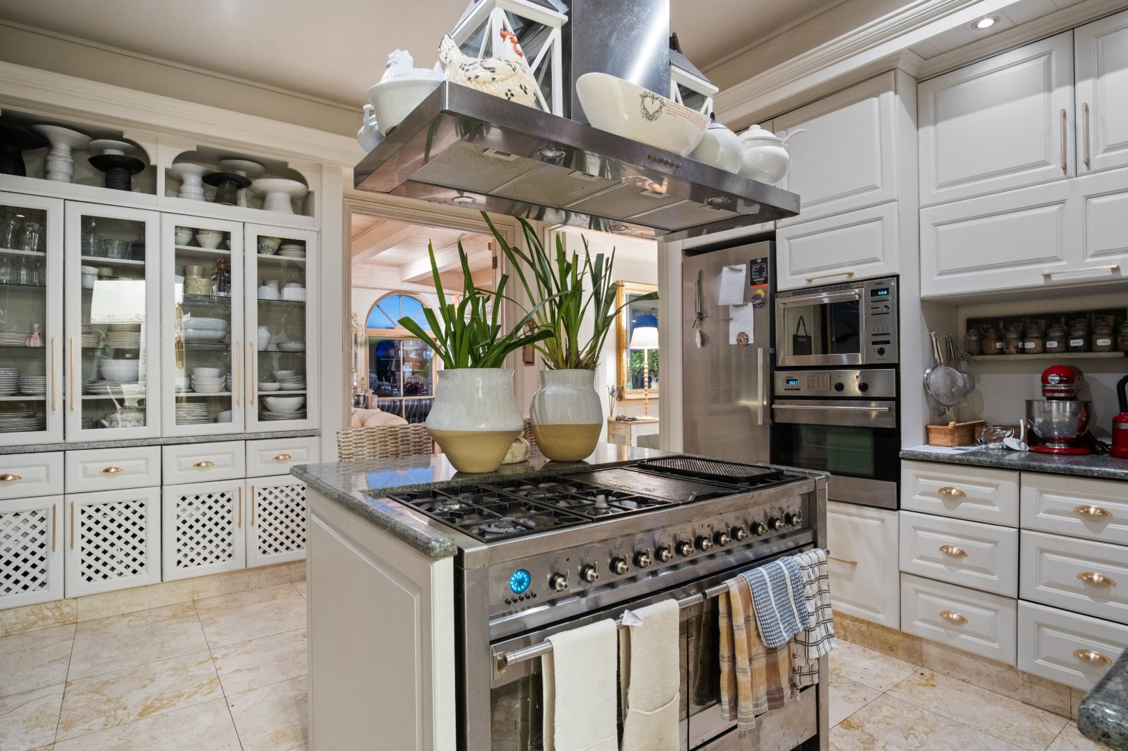 The living spaces are expansive and beautifully interconnected, allowing for effortless indoor outdoor flow. A grand open plan kitchen and dining area forms the heart of the home, complete with a central island and ample space for entertaining. This welcoming culinary space opens seamlessly onto sun-drenched balconies and terraces, making it perfect for long lunches, sunset dinners, and gatherings with family and friends against the backdrop of uninterrupted sea views.