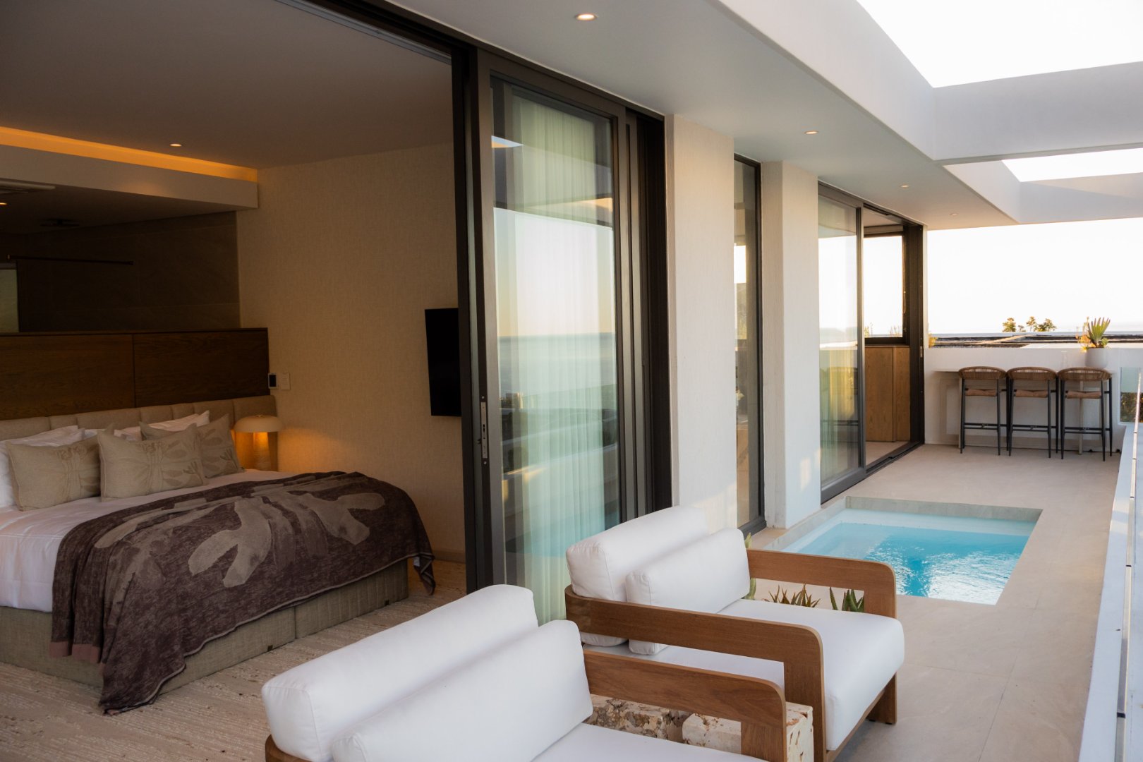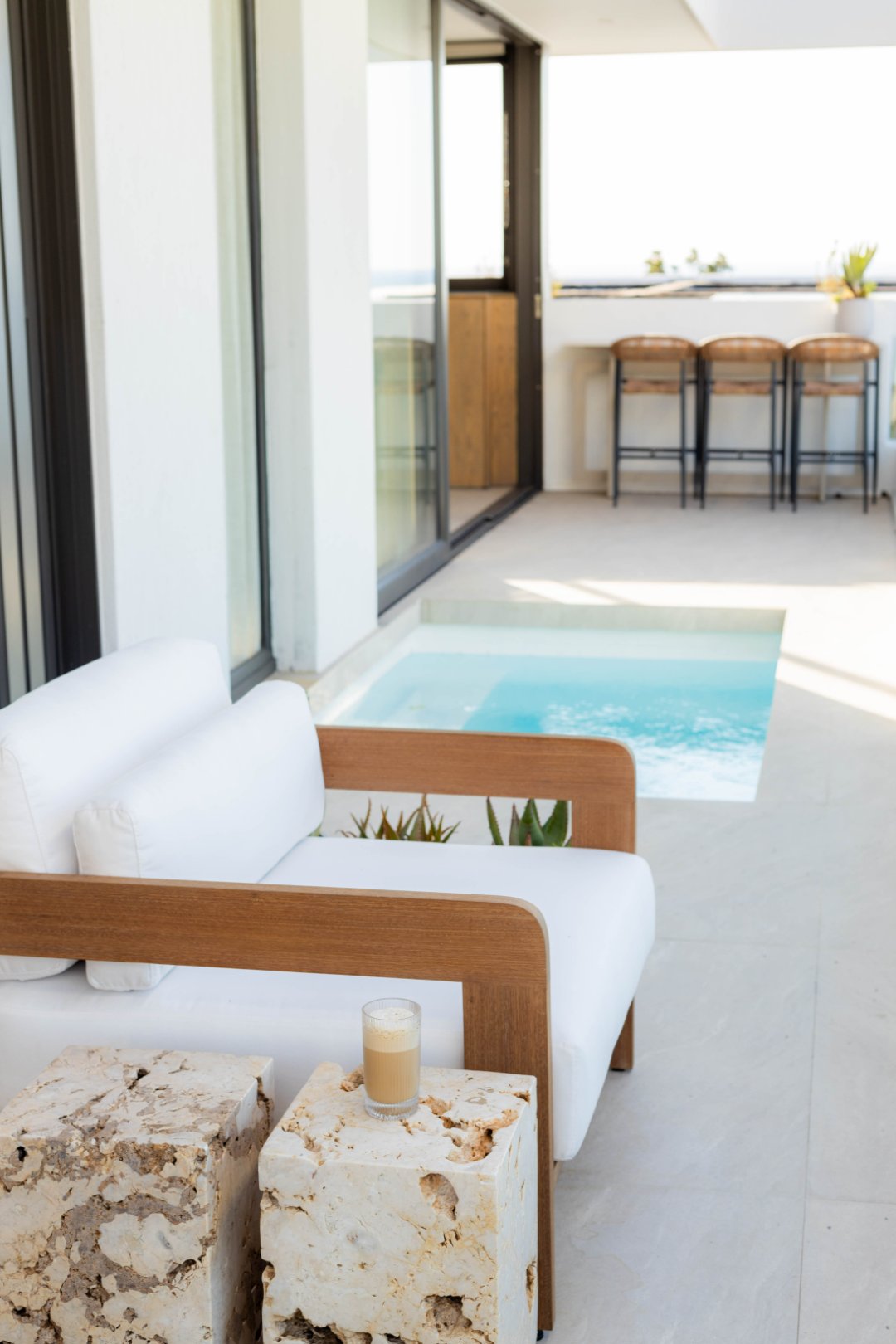 The second level unfolds into an open-plan kitchen equipped with high-end appliances and a convenient scullery complete with washing and drying machines. This level also features a dining area, a lounge, and the primary bedroom with an en-suite bathroom and dressing room—all offering stunning ocean views. Experience breathtaking vistas from numerous vantage points within the property, allowing you to immerse yourself in the serene beauty of the coastline every day.