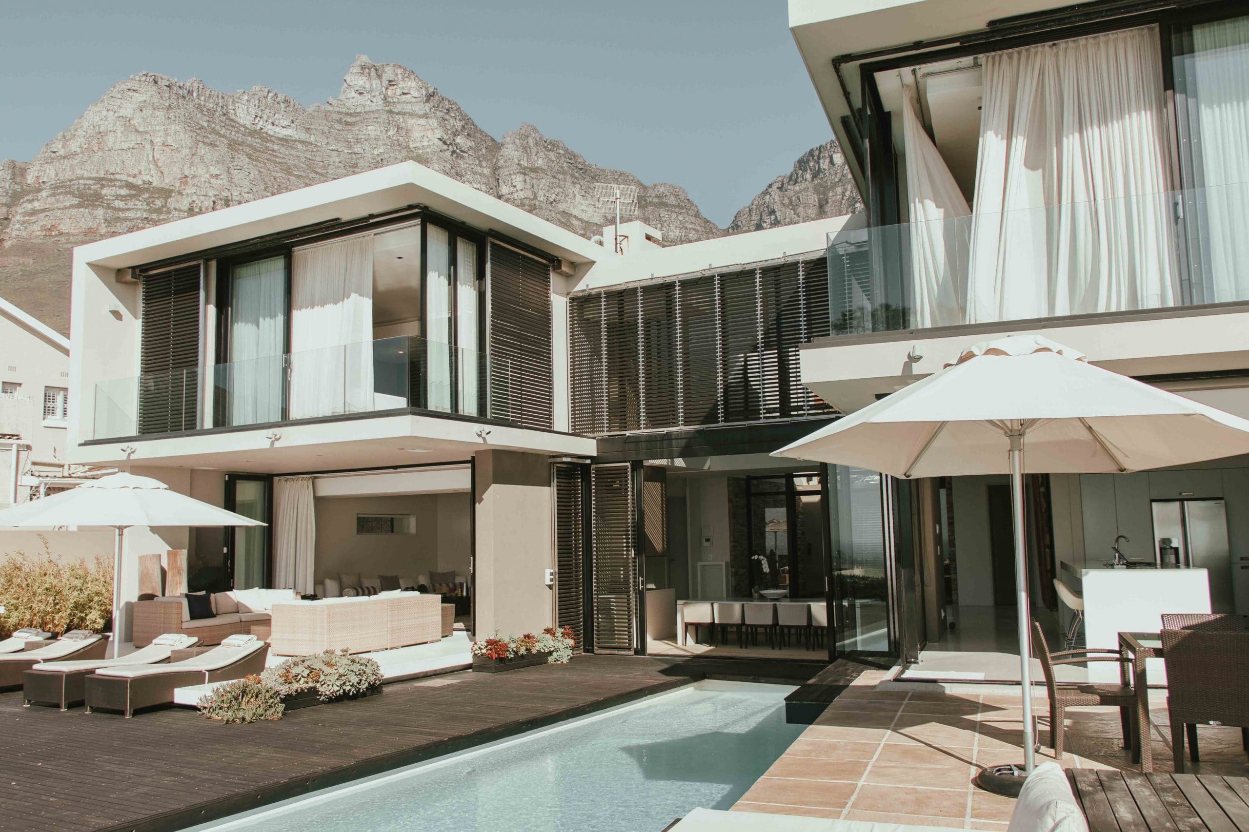In a fynbos paradise. Being in the Cape, one of the world’s richest floral kingdoms, this villa is grounded in its own little piece of virgin fynbos heaven. Naturally beautiful in every way. A sun deck wraps around the perimeter of the villa, maximising views of the Twelve Apostles peaks, Table Mountain, Camps Bay beach and the painterly sunsets that the Cape’s Atlantic horizon is famous for. Located in the cosmopolitan seaside village of Camps Bay, Serenity is an easy walk to Cape Town’s best rated restaurants, vibrant beach bars and pristine palm-lined beaches. Camps Bay is internationally known for its startling natural beauty. Serenity is situated 8kms from the waterfront and city centre, 1km from Camps Bay village and 90kms from the Cape of Good Hope.
