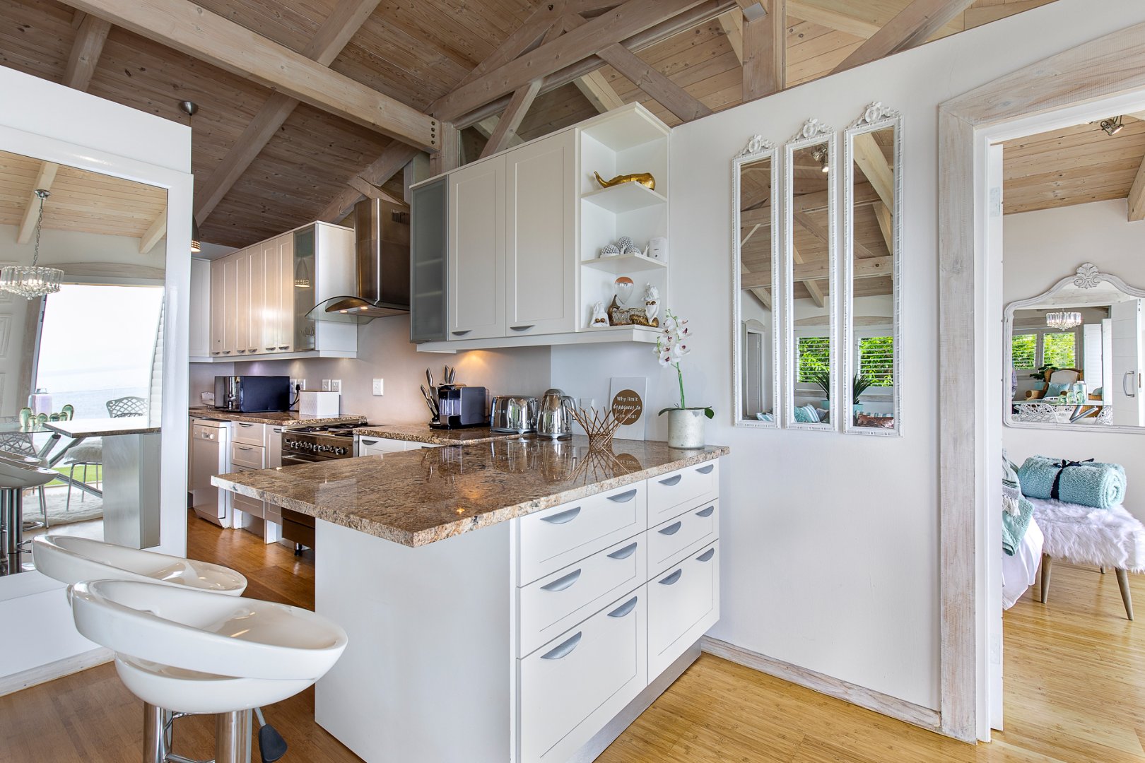 Entering this amazingly furnished penthouse with exposed wooden beams of the vaulted ceiling with airconditioning throughout, the open-plan living area, dining room, and kitchen that is equipped with all the necessary amenities. Step out onto the balcony to enjoy breathtaking sunset views and listen to the waves of the Atlantic Ocean breaking onto Clifton Beach.