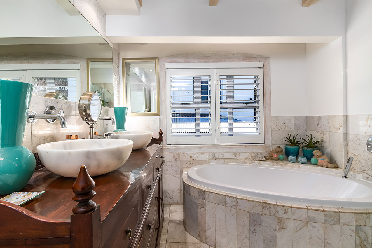 This luxury penthouse unit has two ensuite bedrooms with access to a balcony to enjoy the views of the ocean.