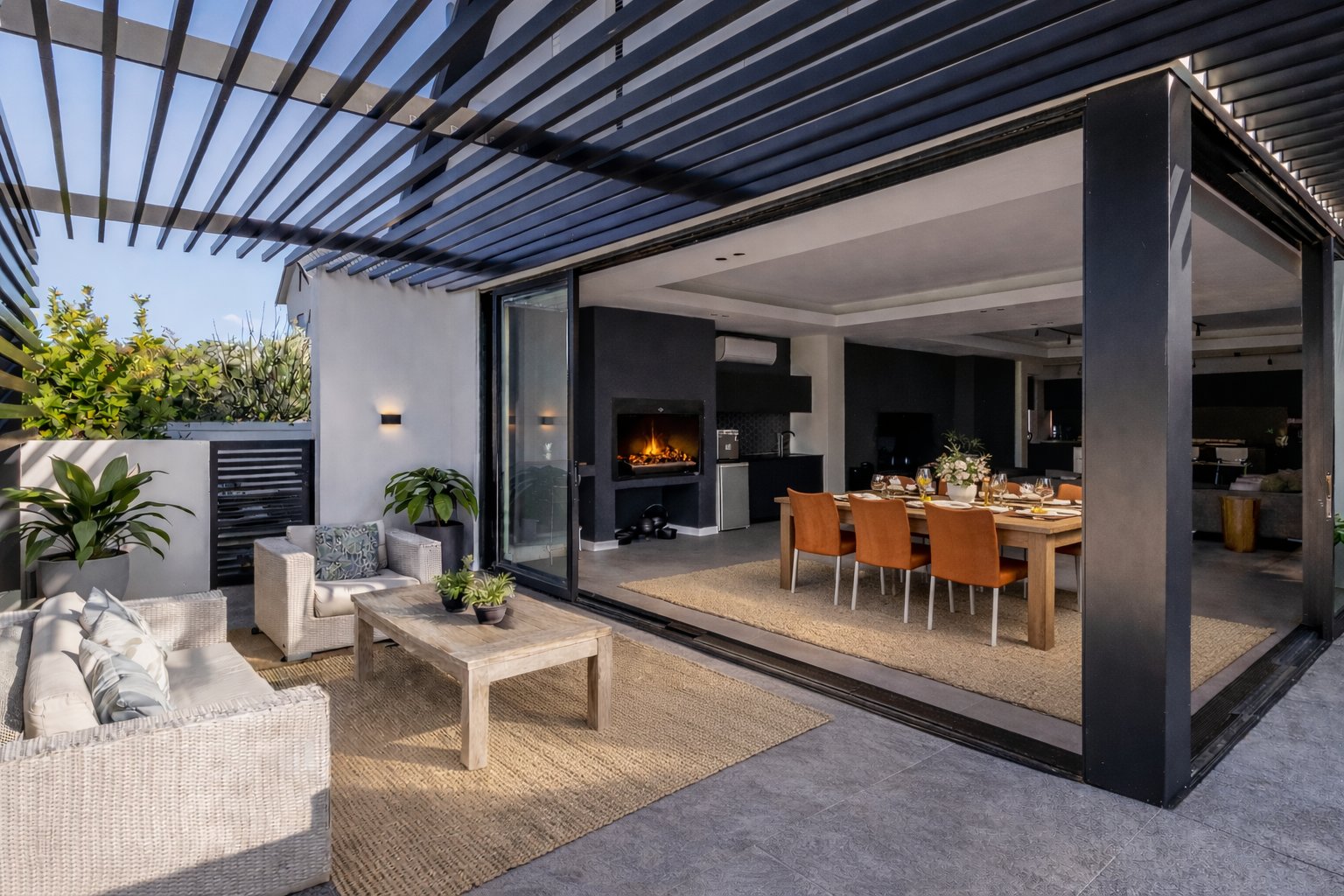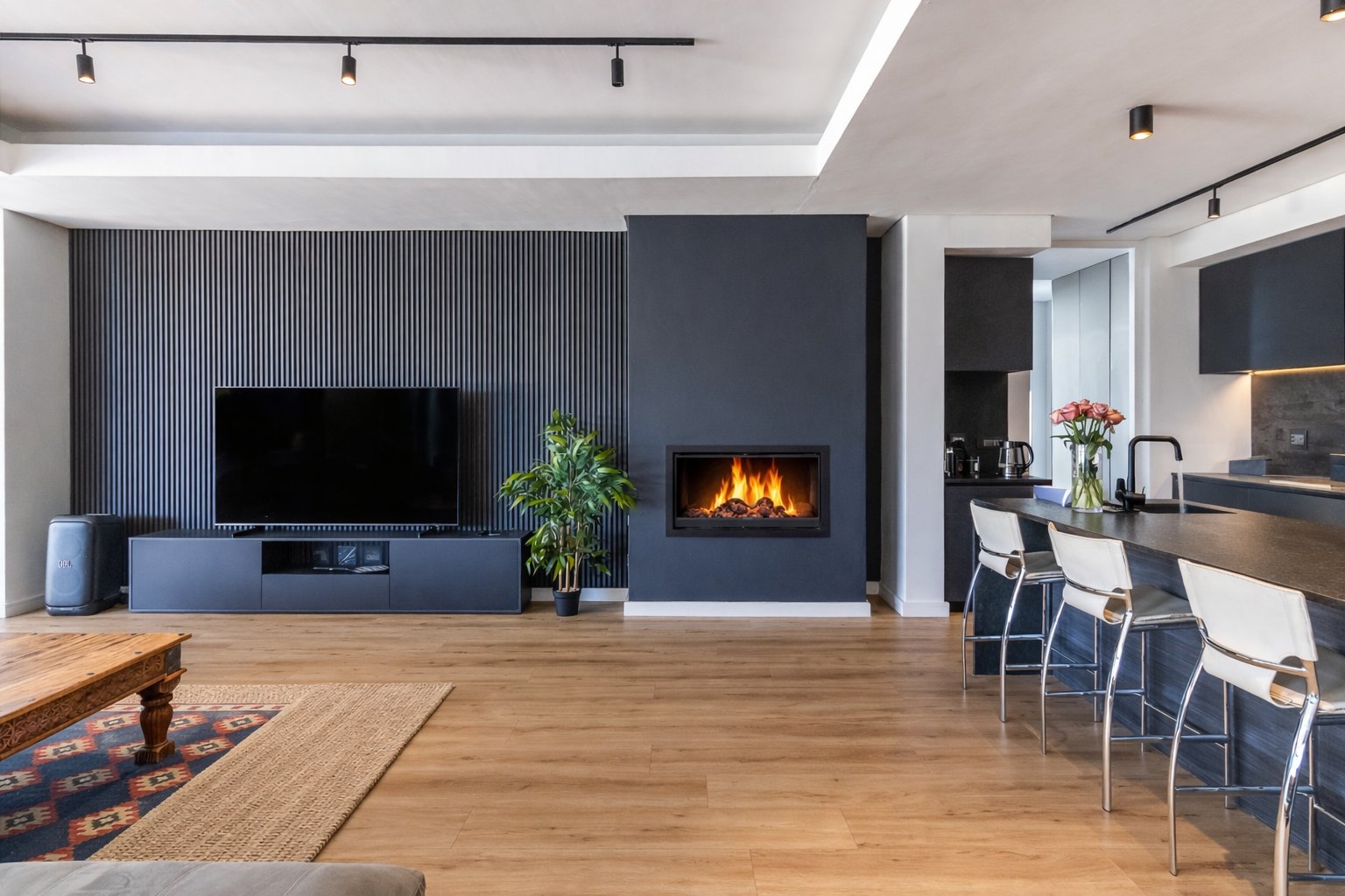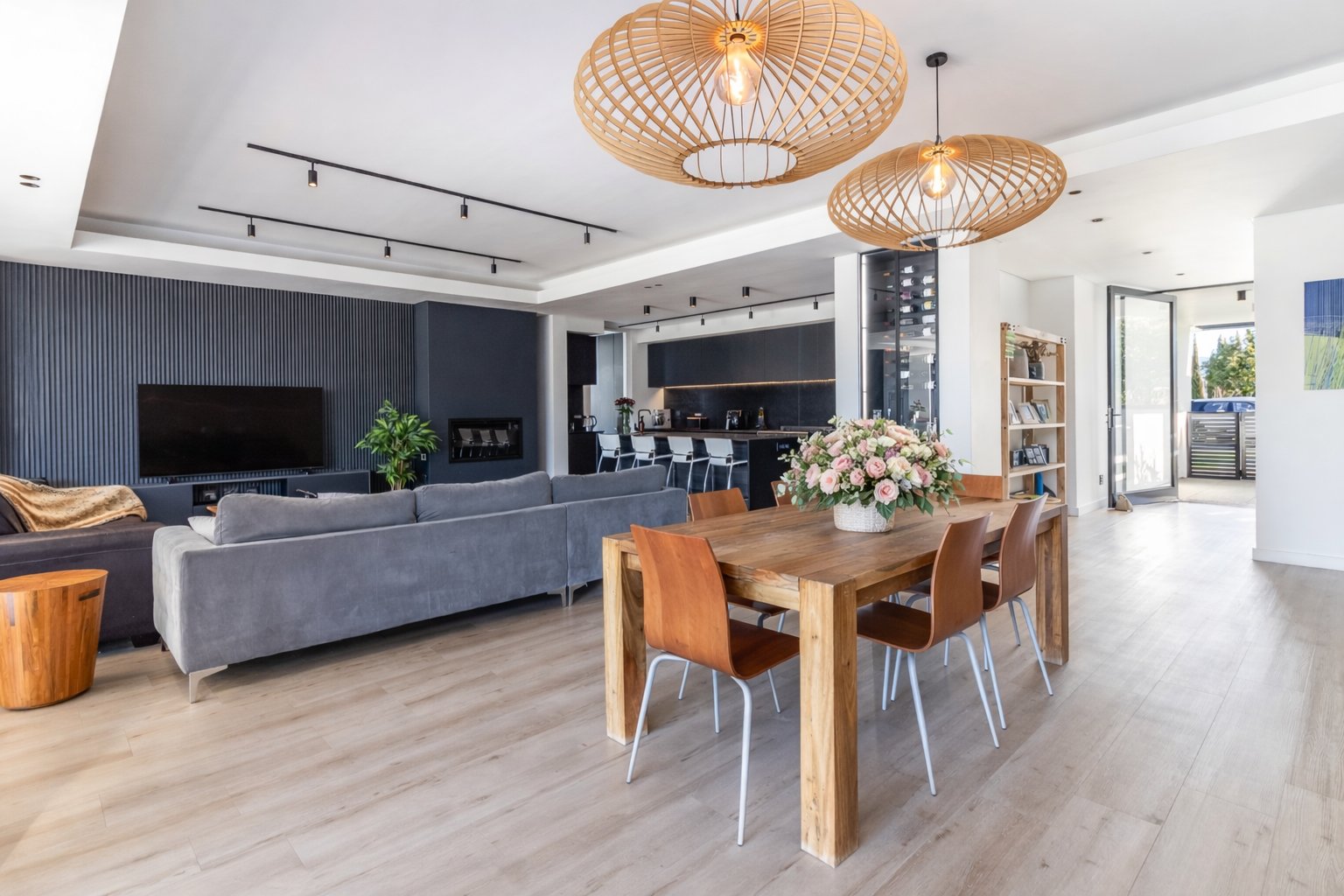At its centre, expansive open-plan living and dining spaces transition effortlessly to a covered entertainer’s patio and sun-drenched pool deck, where uninterrupted mountain vistas create a sense of calm and grandeur. The statement designer black kitchen, both sculptural and functional, anchors the home — a sophisticated hub for daily living and elevated entertaining alike.