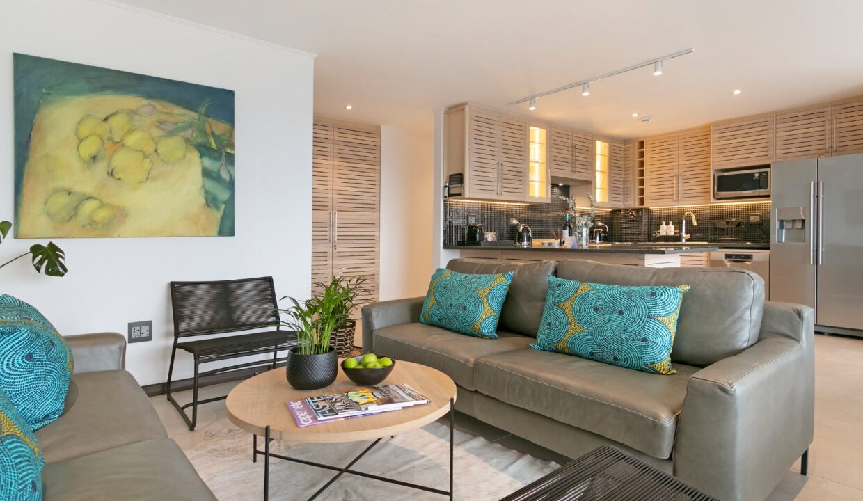There is a 8-seater dining table in the apartment. Although breakfast is not served at The Murex, special arrangements can be made prior to arrival. The choice of a breakfast basket or chef for breakfast/lunch or dinner at an additional cost can be made when booking. Sea Point hosts a variety of Restaurants within proximity. There is also a fully equipped open plan kitchen in all apartments with tea/coffee facilities including a Nespresso machine, Smeg oven, kettle and toaster, dishwasher, dryer and washing machine. Comfortable seating in Lounge with DSTV and Netflix. As well as a panoramic view of the Atlantic seaboard.