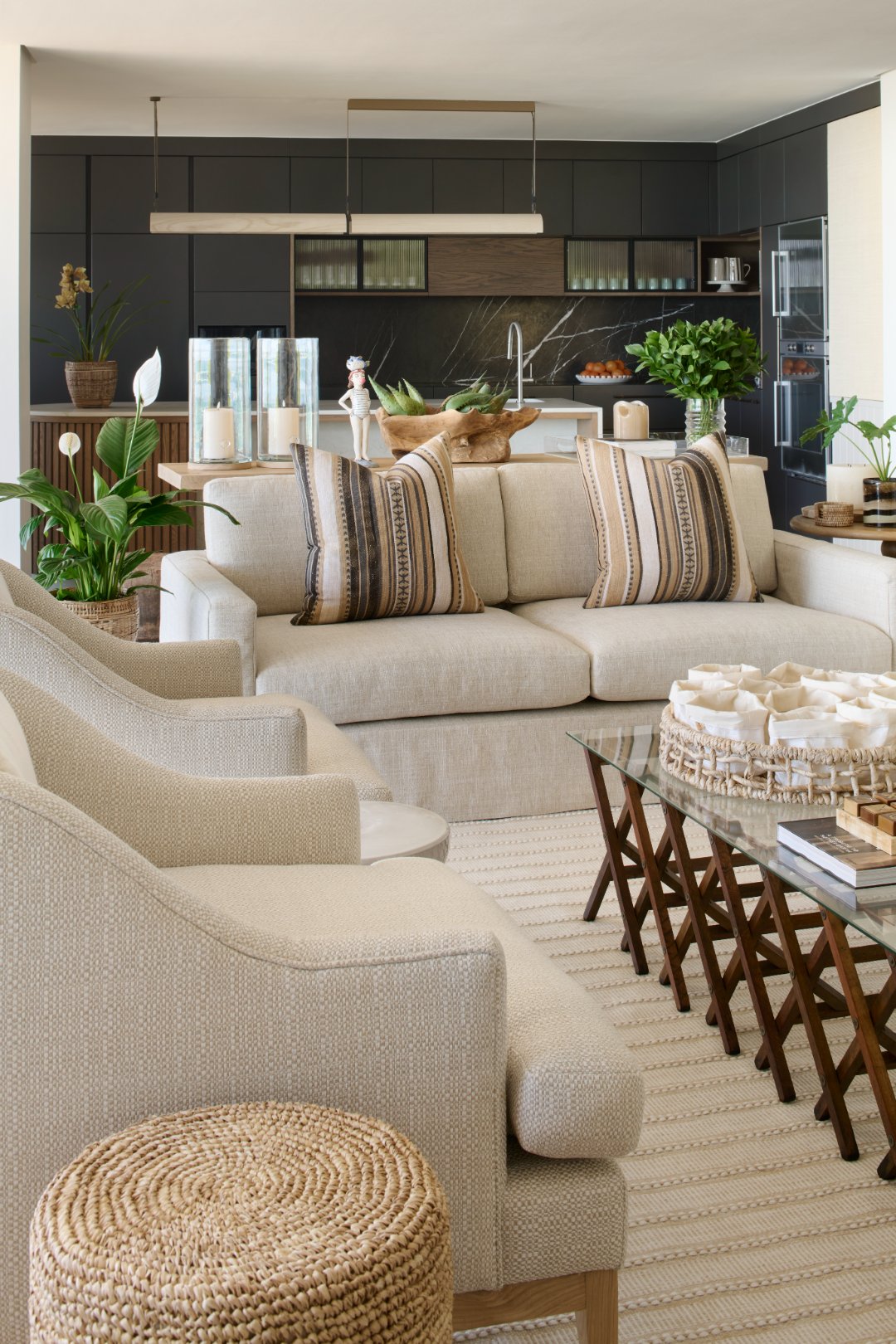 This exclusive beachfront retreat is more than a stay – it’s a full-service, private concierge villa experience, combining barefoot beach living with refined sophistication. Designed for those who expect the exceptional, the villa’s interiors are sleek, sculptural, and serene – layered in warm neutrals, coastal tones, and luxurious natural textures.