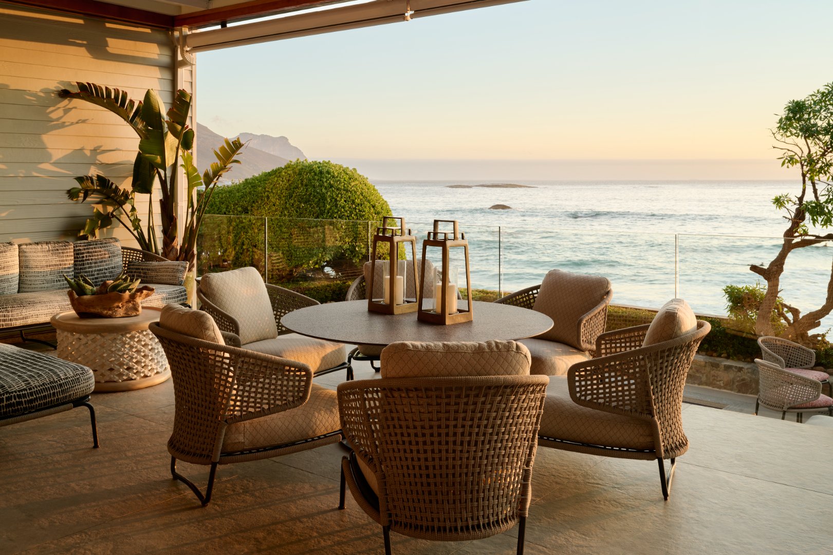 -Outdoor lounge & dining area with panoramic sea views